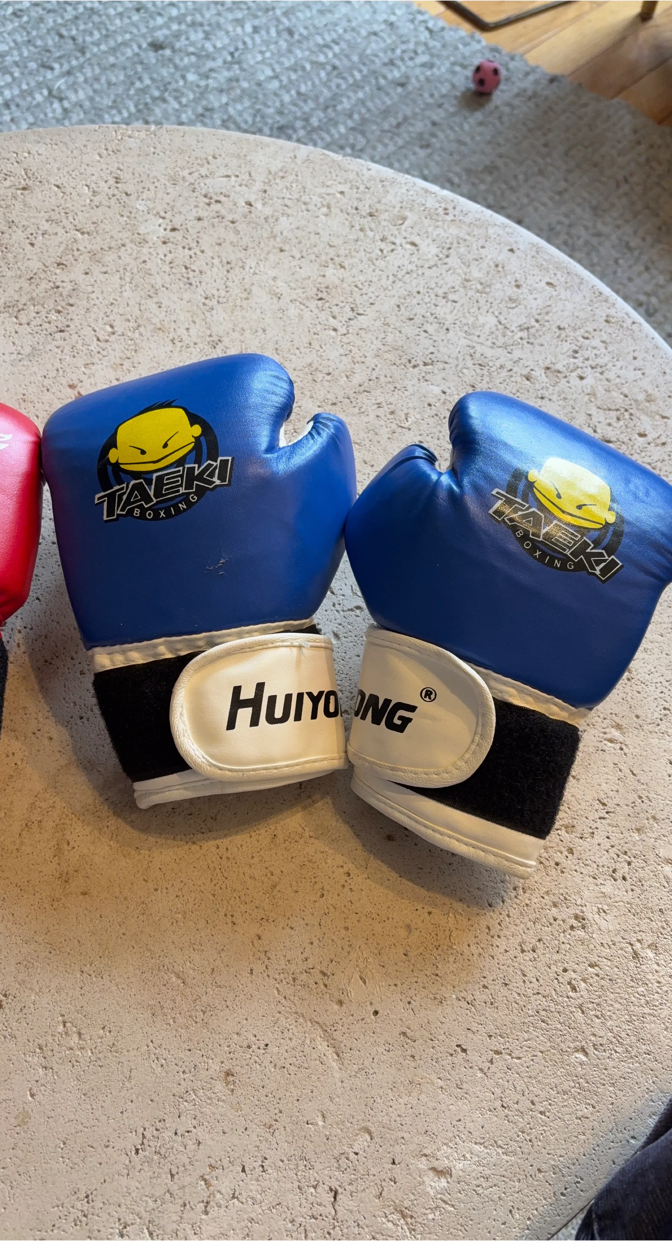 Selling a pair of Taeki boxing gloves in blue. They are in good condition and ready for your next sparring session! The gloves also feature Huiyong wrist support.