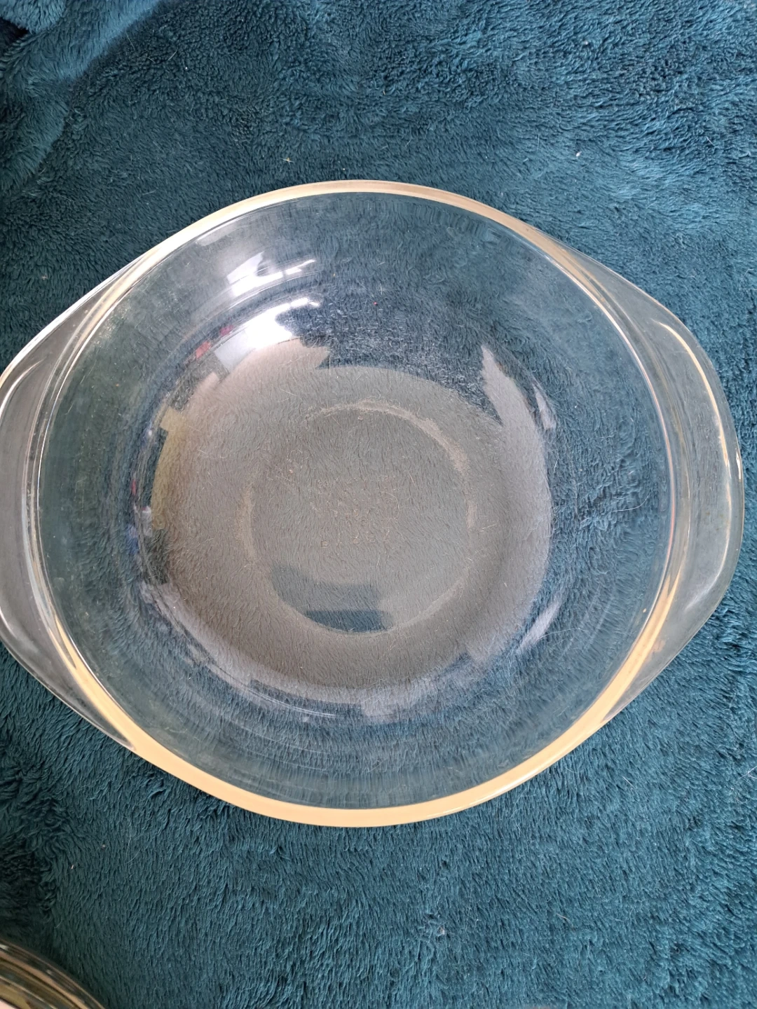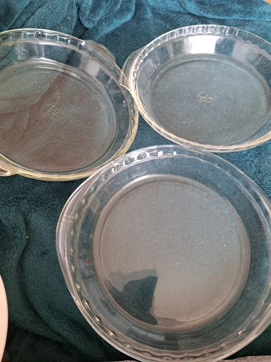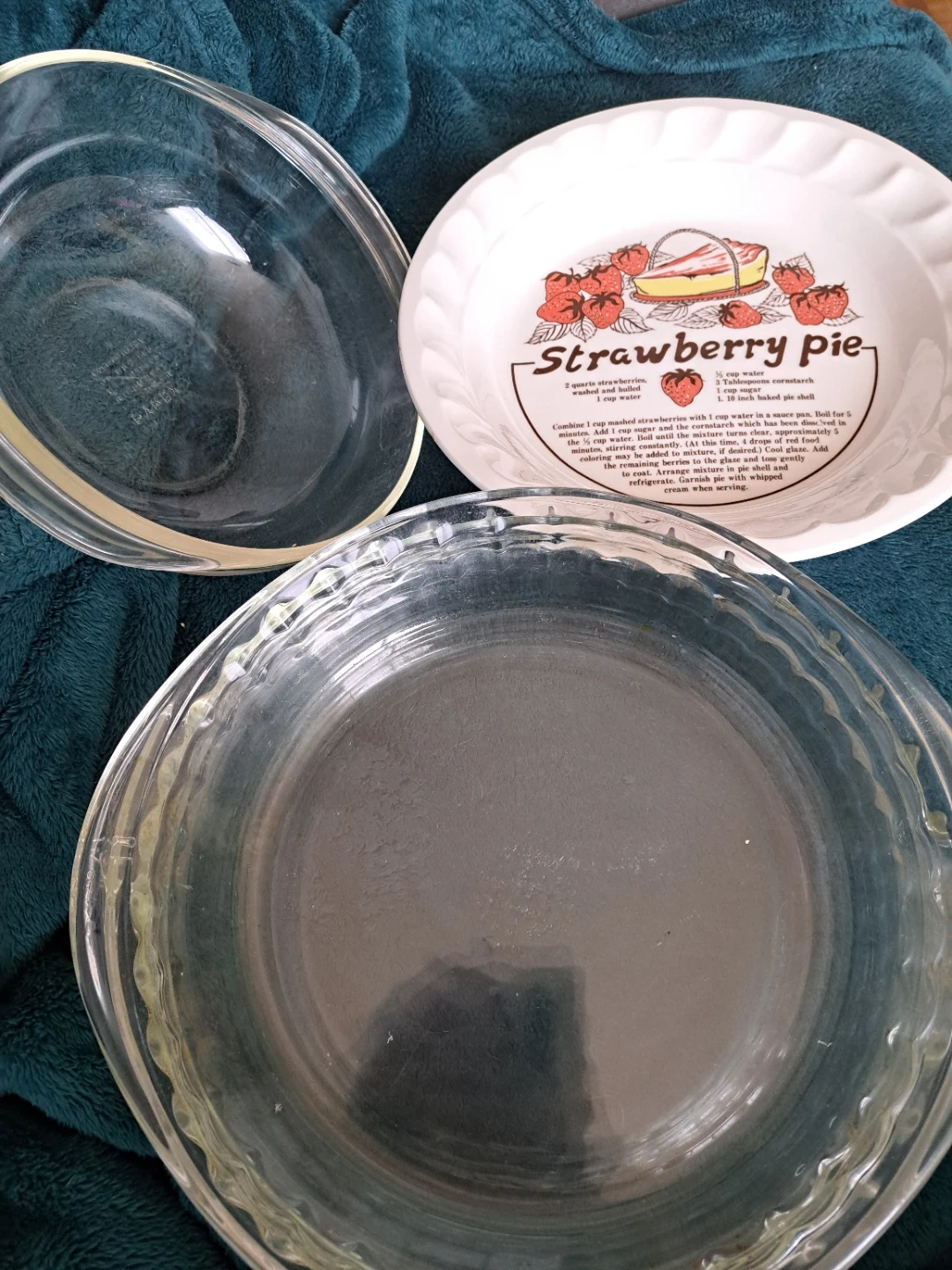 Selling a mix of pie plates! There are clear glass plates and one with a cute strawberry pie design. Perfect for baking up some delicious treats