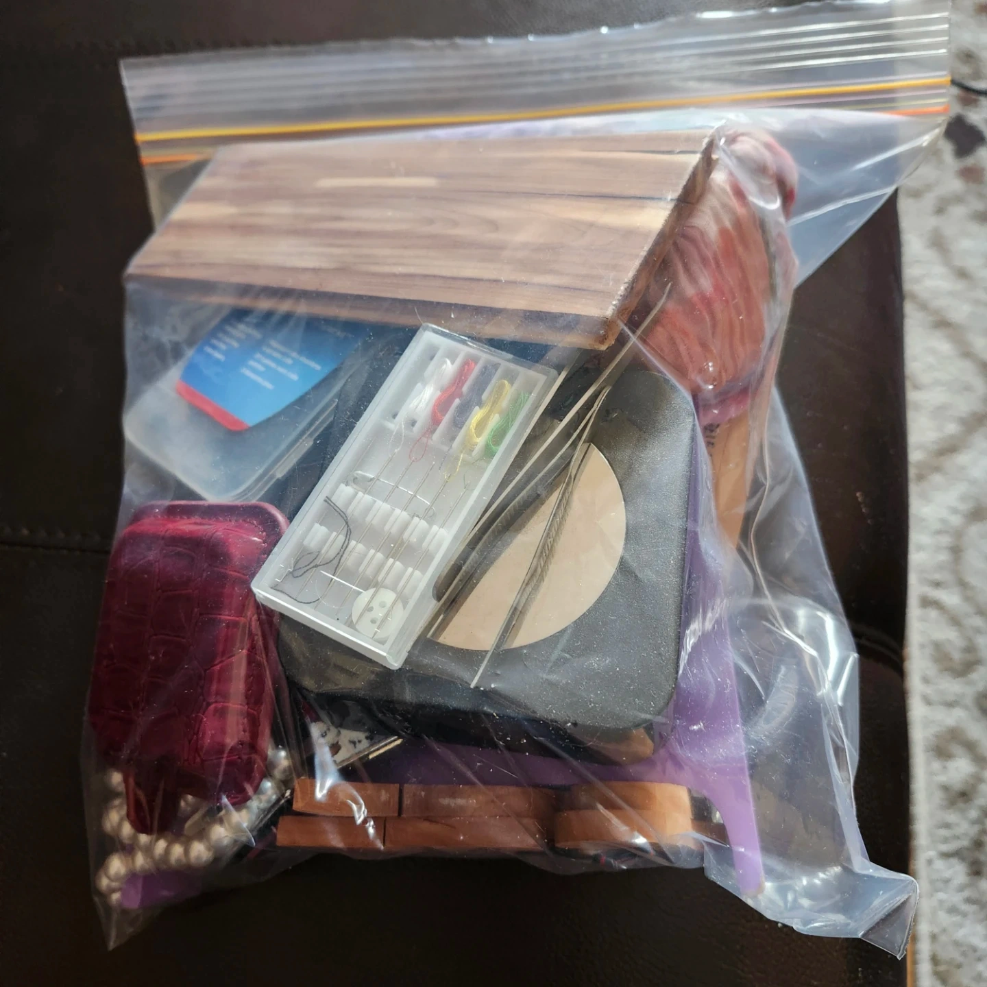 I'm selling a mixed lot of items! It includes a variety of items such as scissors, tweezers, beads, measuring tape, large magnet, and some crafting essentials. Bag1 of 3