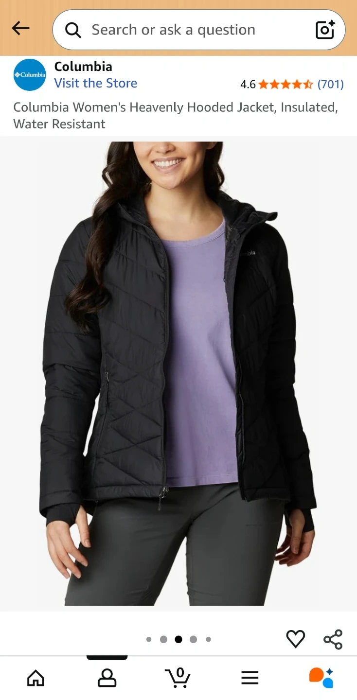 Selling a brand new never used Columbia Women's Heavenly Hooded Jacket in black,large. It's insulated and water resistant, perfect for our Canadian weather