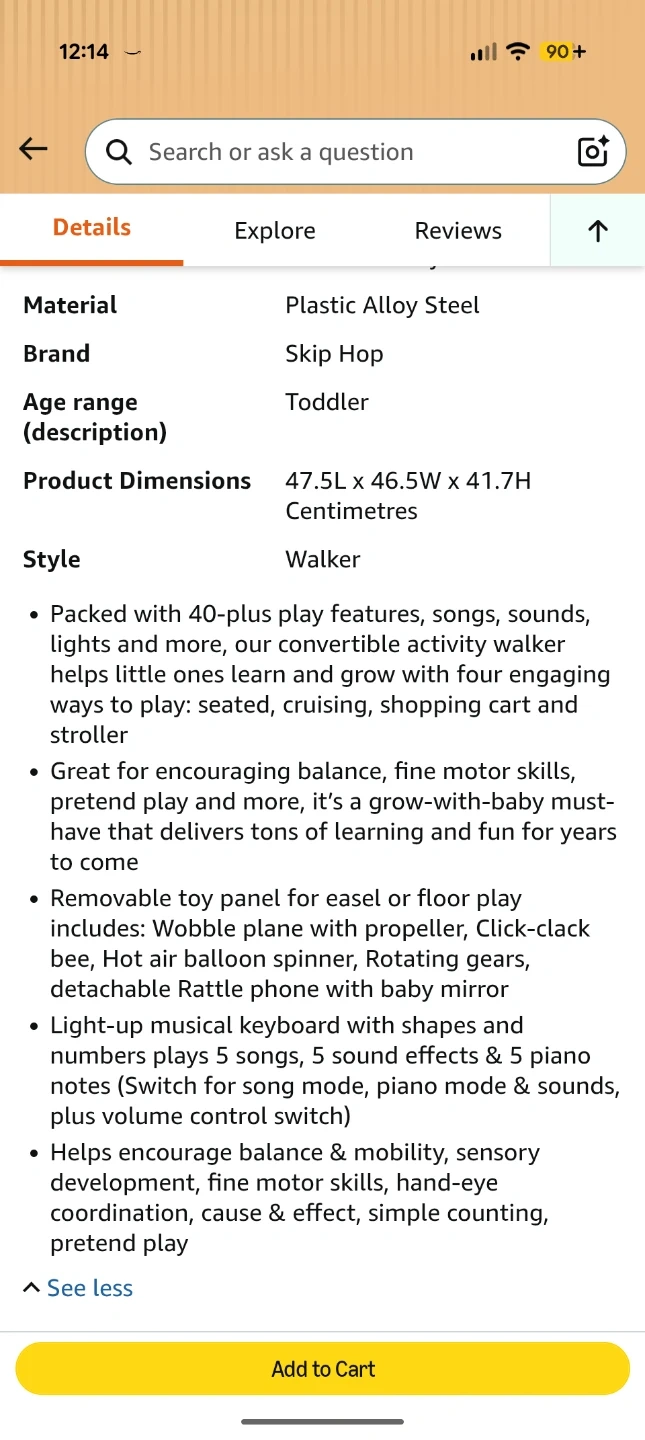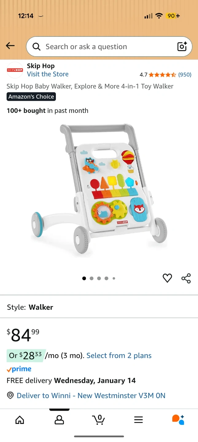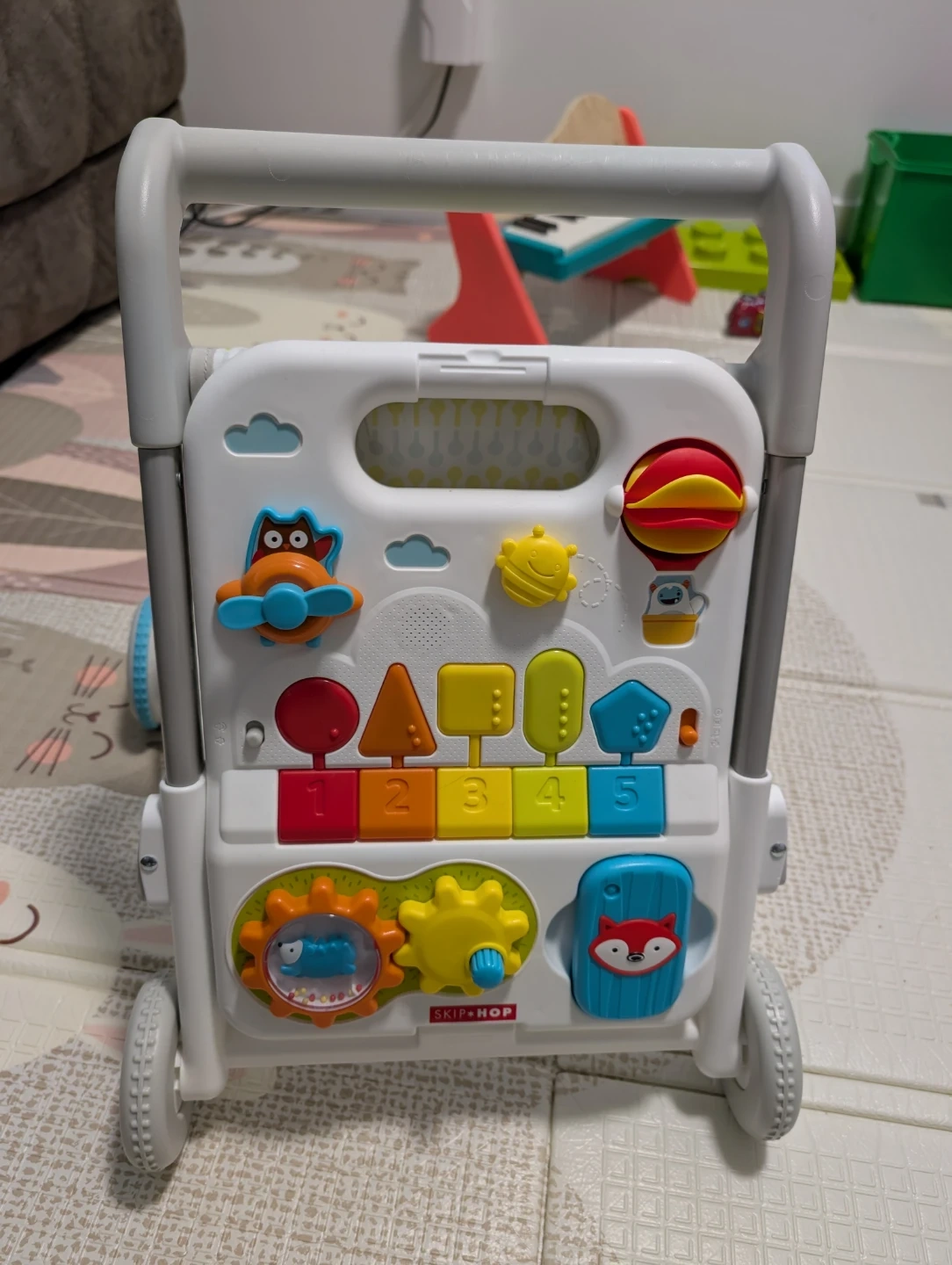 Selling a Skip Hop Baby Walker, Explore & More 4-in-1 Toy Walker! This walker is packed with 40-plus play features, songs, sounds, lights and more. It's a convertible activity walker that helps little ones learn and grow with four engaging ways to play: seated, cruising, shopping cart and stroller. It helps encourage balance & mobility, sensory development, fine motor skills, hand-eye coordination, cause & effect, simple counting, pretend play. Originally bought for $84.99