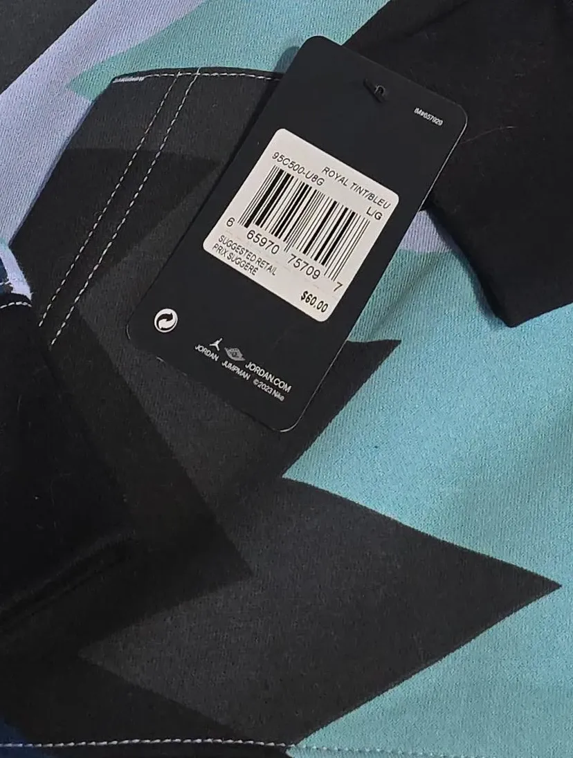 Selling a Nike Jordan top in Royal Tint/Bleu, size L/G. The suggested retail price on the tag is $60.00. It's in great condition and ready for a new owner!