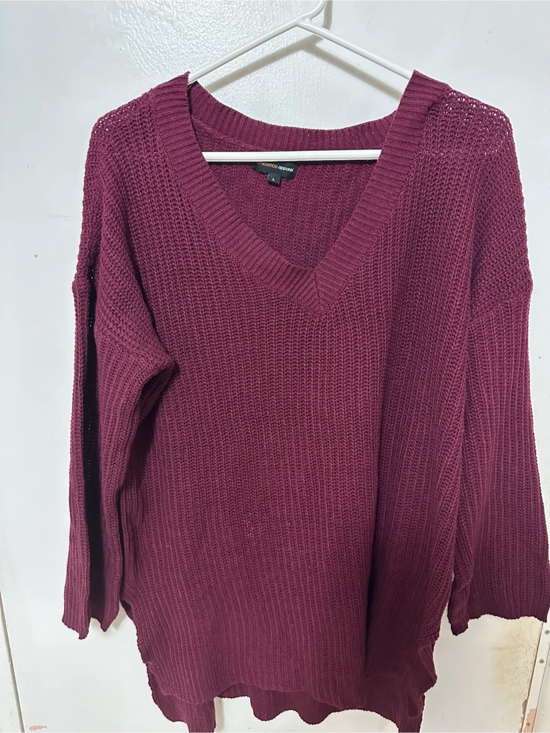 Ambiance Apparel Burgundy Knit Sweater - Size L