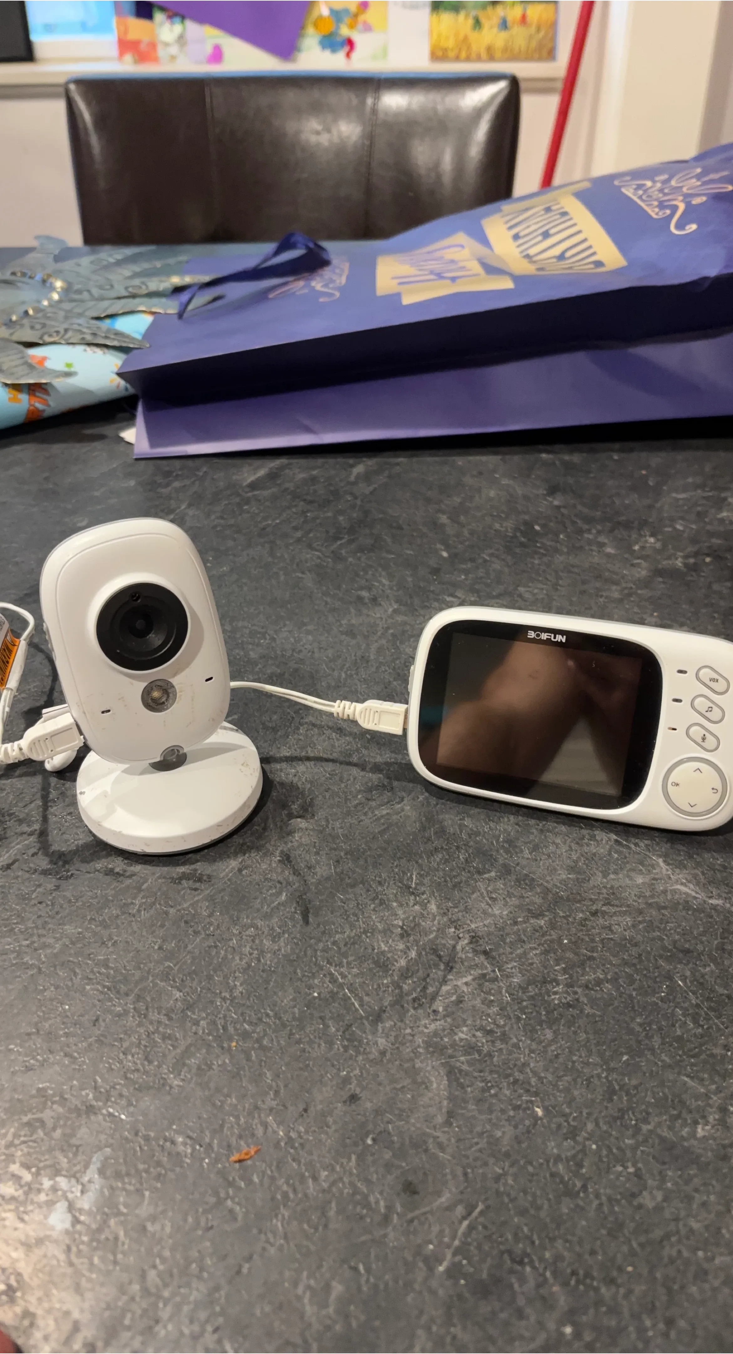 Selling a used BOIFUN baby. There’s some tape residue on it from us sticking it to the wall, but works perfectly fine :)