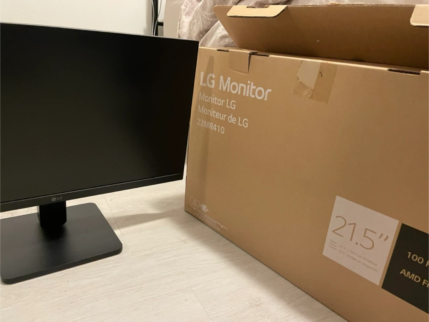 LG 22MR410-B monitor, 21.5 inches — clean, crisp, no flaws.