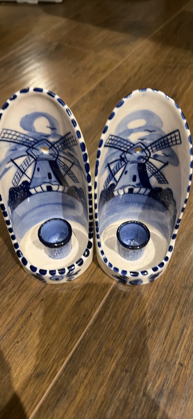 A lovely pair of Blue candle holders, perfect for adding a touch of Dutch charm to your home! They feature a traditional windmill design and are in great condition