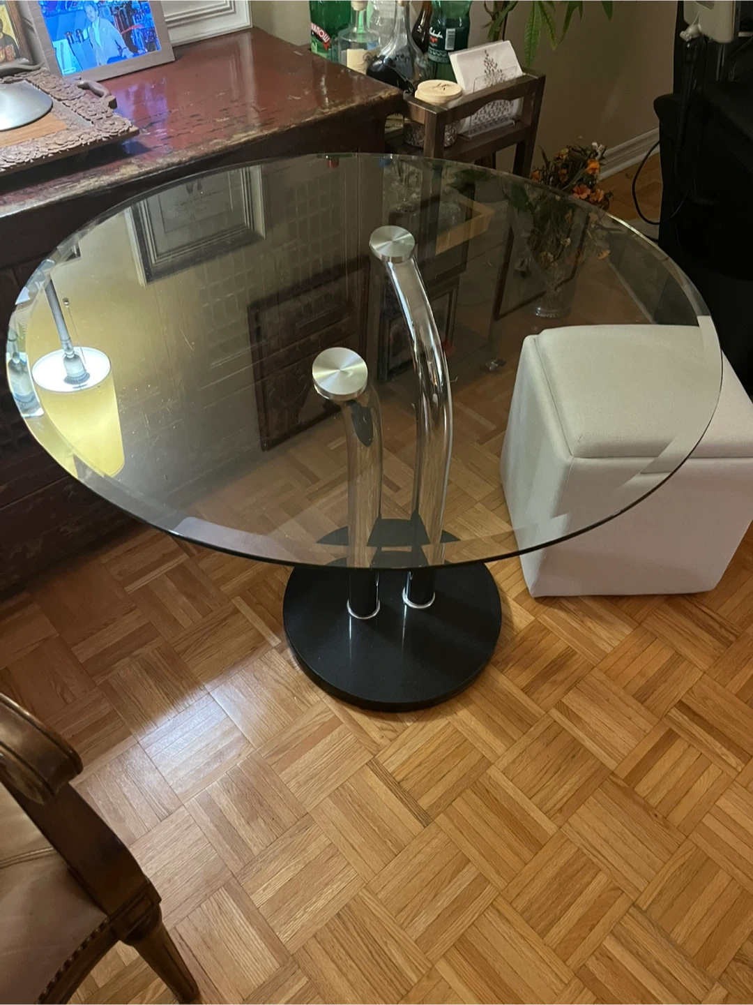 Glass Top Round Dining Table