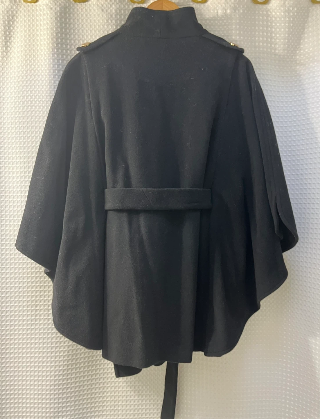 Selling a stylish black cape from Shani in size M/L It's in great condition and features a belt to cinch the waist. Brand New. Perfect for adding a touch of elegance to any outfit.