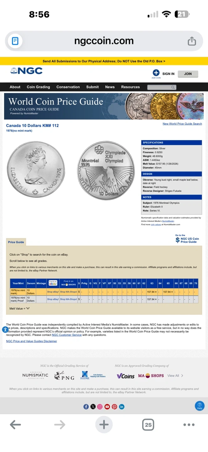 1976 1.44 OZ Silver Montreal Olympics $10 - .925 Silver Coin