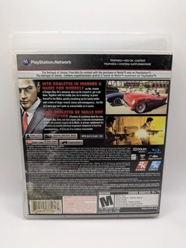 Immerse yourself in the gritty world of organized crime with Mafia II for the Sony PlayStation 3. Set in the 1940s and 50s, this action-packed adventure game follows the story of Vito Scaletta as he rises through the ranks of the Mafia. Published by 2K Games, this M-rated title offers a gripping narrative, realistic graphics, and intense gameplay for mature players.