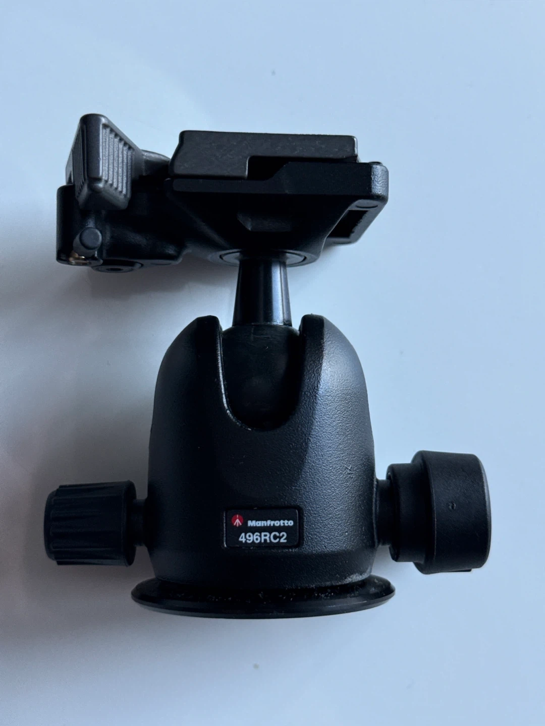 Selling a Manfrotto 496RC2 ball head. This is a great tripod head for cameras. It's in new condition, lightweight and portable, making it easy to carry and adjust for photoshoots on the go.