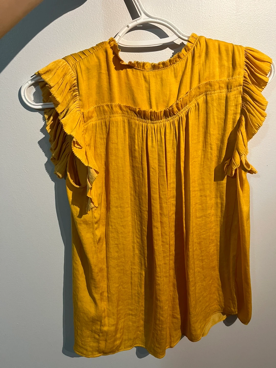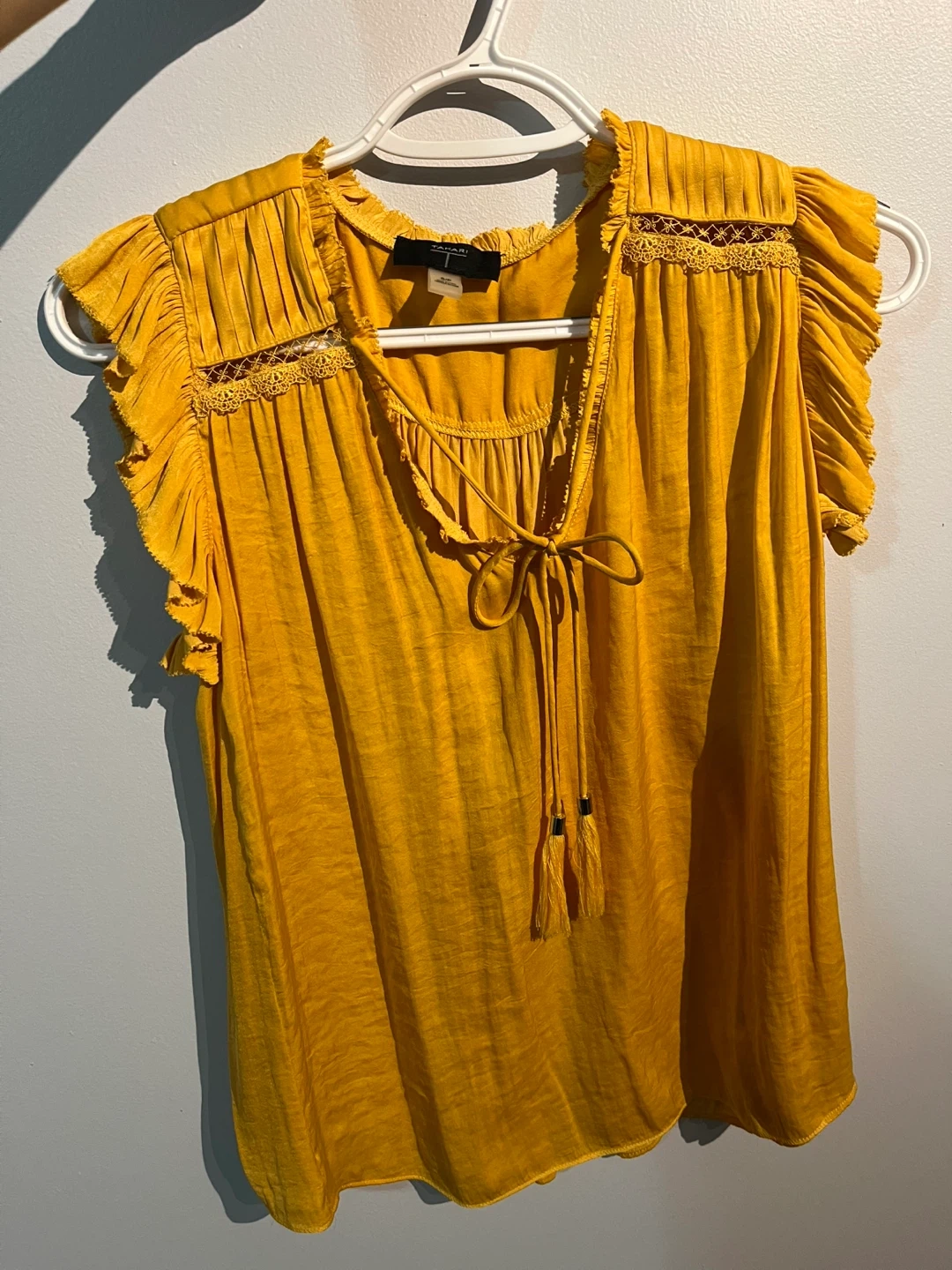 Buy & SellTahari Yellow Ruffle Blouse - Size S 🧡Tahari Yellow Ruffle Blouse - Size S 🧡$20This is a Tahari blouse in a vibrant yellow colour! It features ruffle detailing adding a touch of elegance. The size is S/P.ConditionLike newSizeSmallBrandTahariWHERE TO MEETCheck LocationView MapSELLERverifiedKayLangstaff943 reviews0 chats·0 favorites·6 viewsSEND CHAT TO SELLERHi Kay! I’m interested in your listing.Hi Kay! I’m interested in your listing.Get the Karrot app to chatSign In to chat