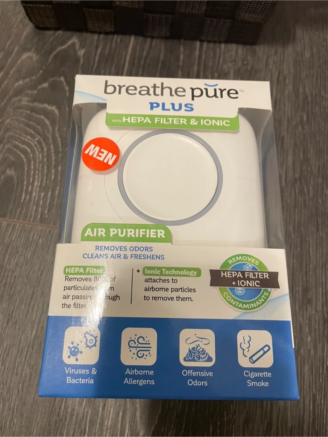 Brand new Breathe Pure Plus portable plug-in air purifier - in its original packaging.