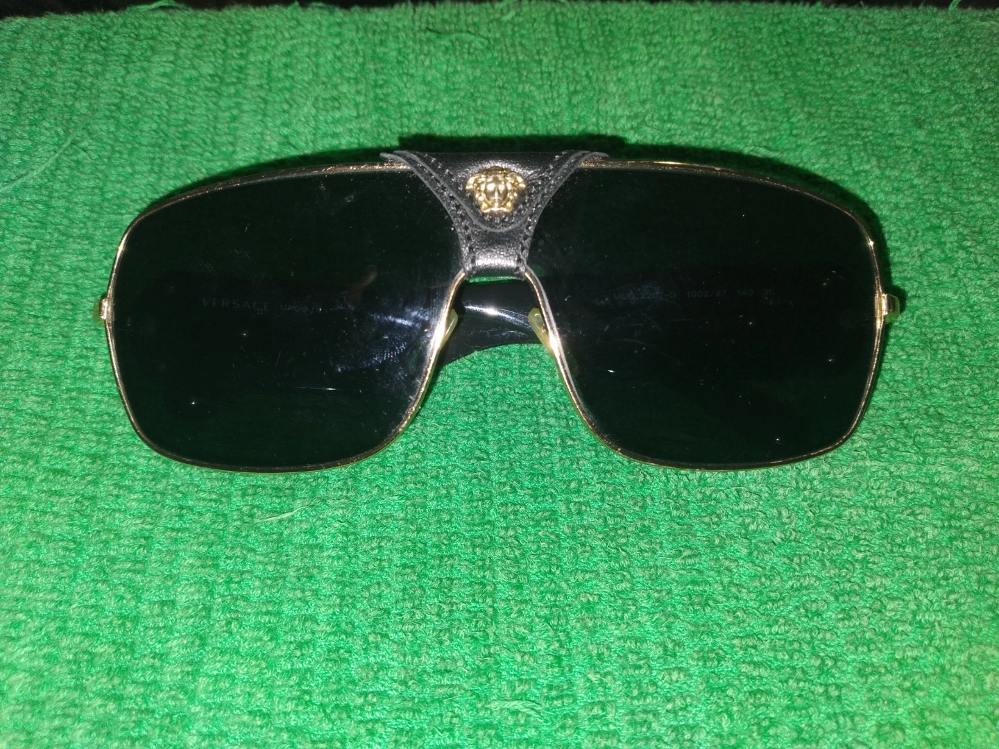Selling a pair of Versace sunglasses. They have a gold frame and the Versace logo on the side. Stylish and in great condition!