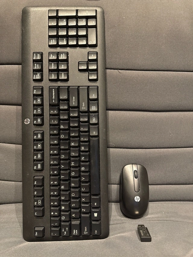 This HP wireless keyboard and mouse combo is in used condition, perfect for enhancing your home or office setup. The set includes a wireless keyboard, a wireless mouse, and a USB receiver for easy connectivity.