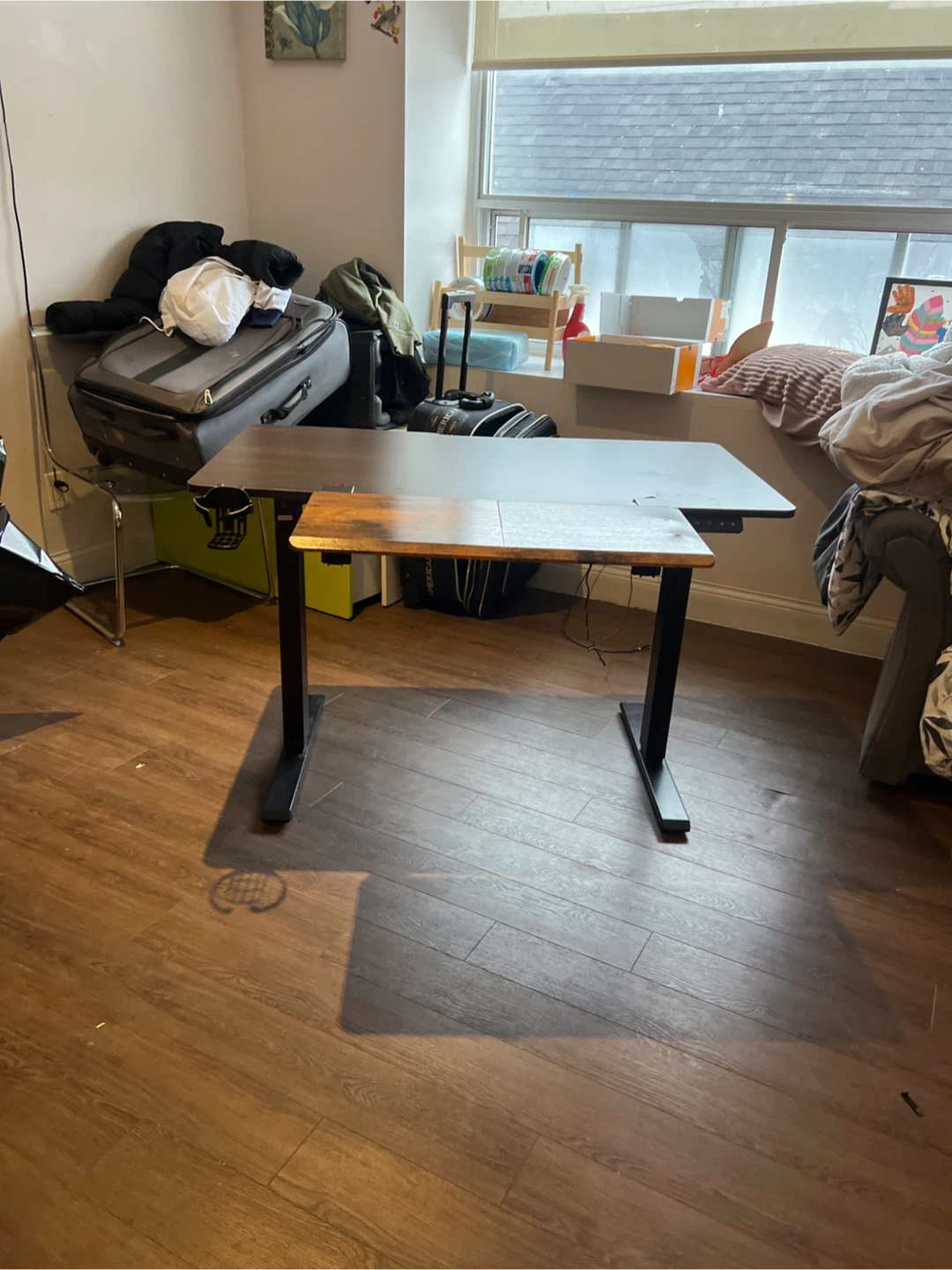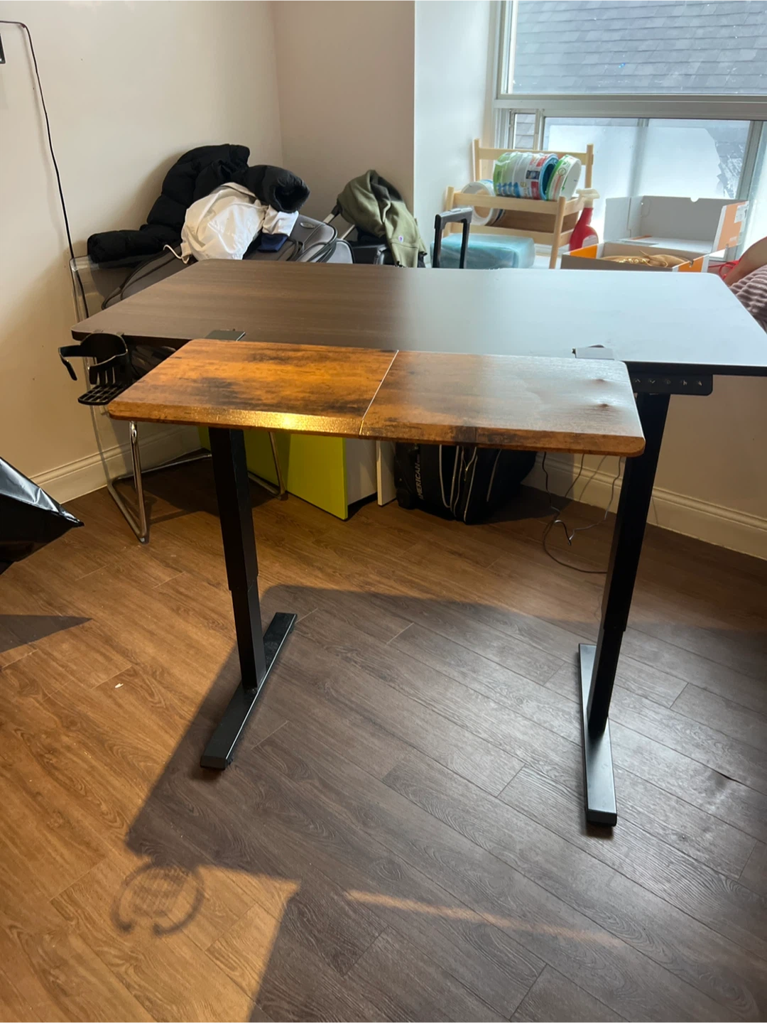 1 / 101 / 10Buy & SellAdjustable Standing Desk and charAdjustable Standing Desk and char$135Selling an adjustable standing desk in great condition. It features a dark brown wood finish and has an attached side table.WHERE TO MEETAshdale libraryView MapSELLERverifiedRonGreenwood Coxwell23413 reviews4 chats·2 favorites·128 viewsSEND CHAT TO SELLERHi Ron! I’m interested in your listing.Hi Ron! I’m interested in your listing.Get the Karrot app to chatSign In to chat