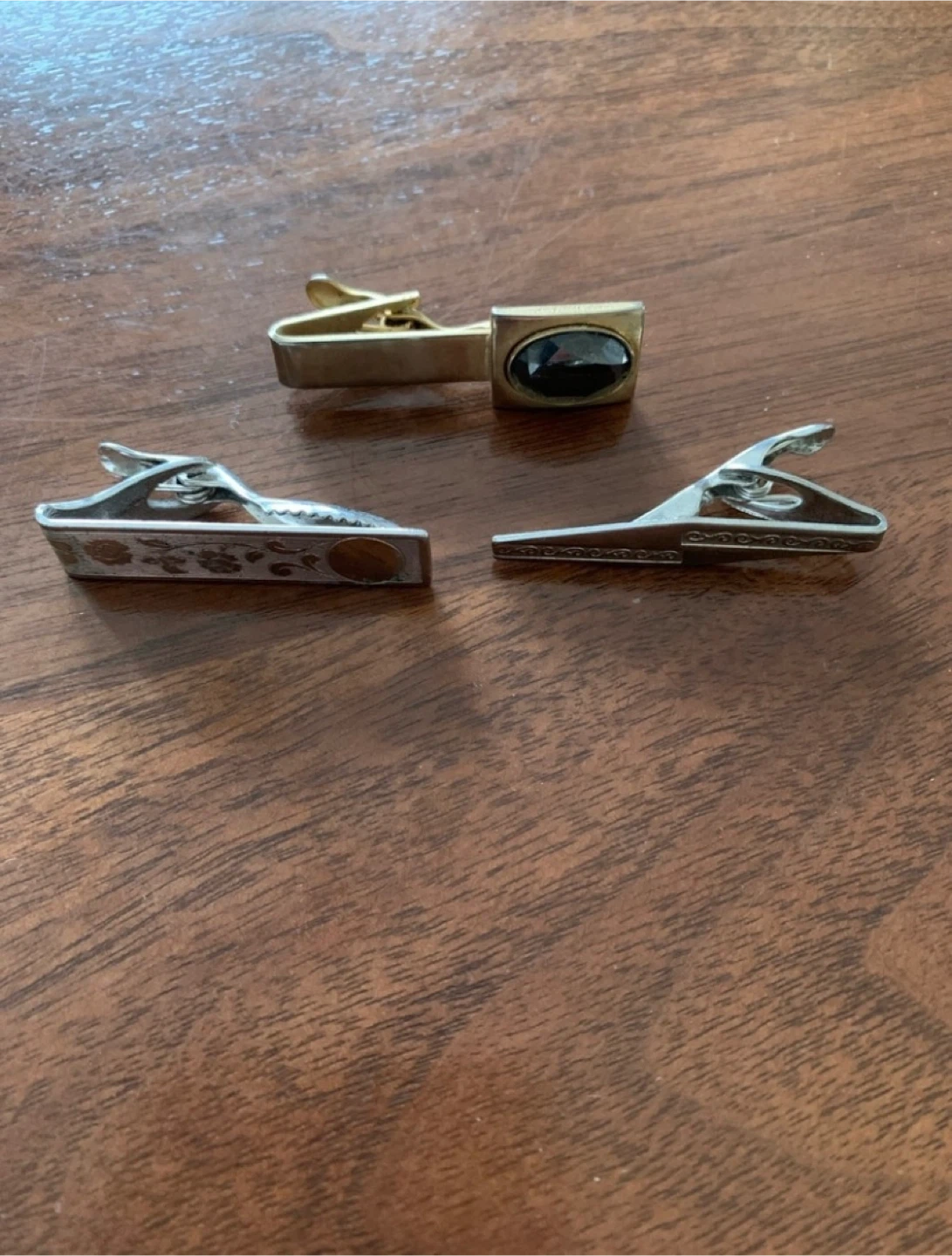 Selling a set of three vintage tie clips. They have a classic look and are in great shape. Perfect for adding a touch of style to any outfit! All 3 for $10