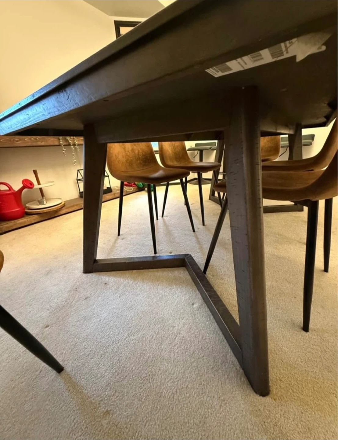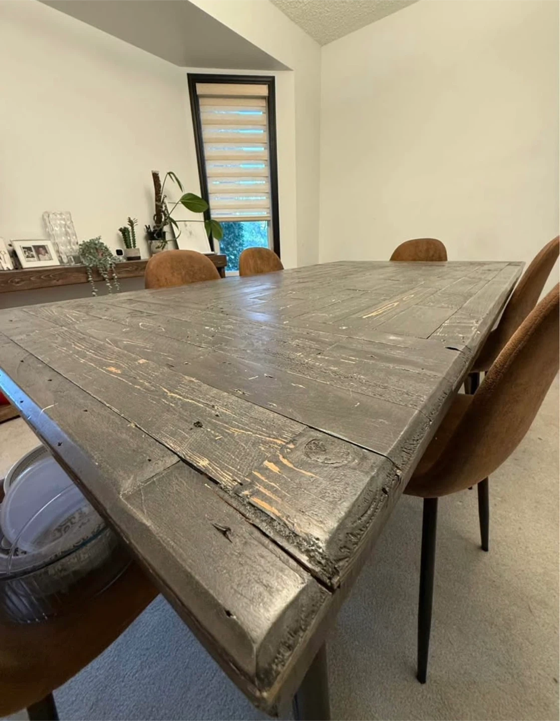 Selling a rustic wooden dining table! It's a great size for family dinners or gatherings. The table shows some signs of wear, which adds to its character. It measures approximately 30" high, 76" length, 40" wide.