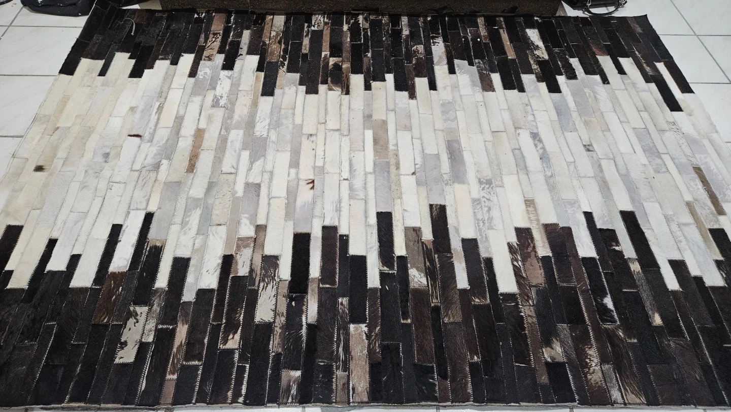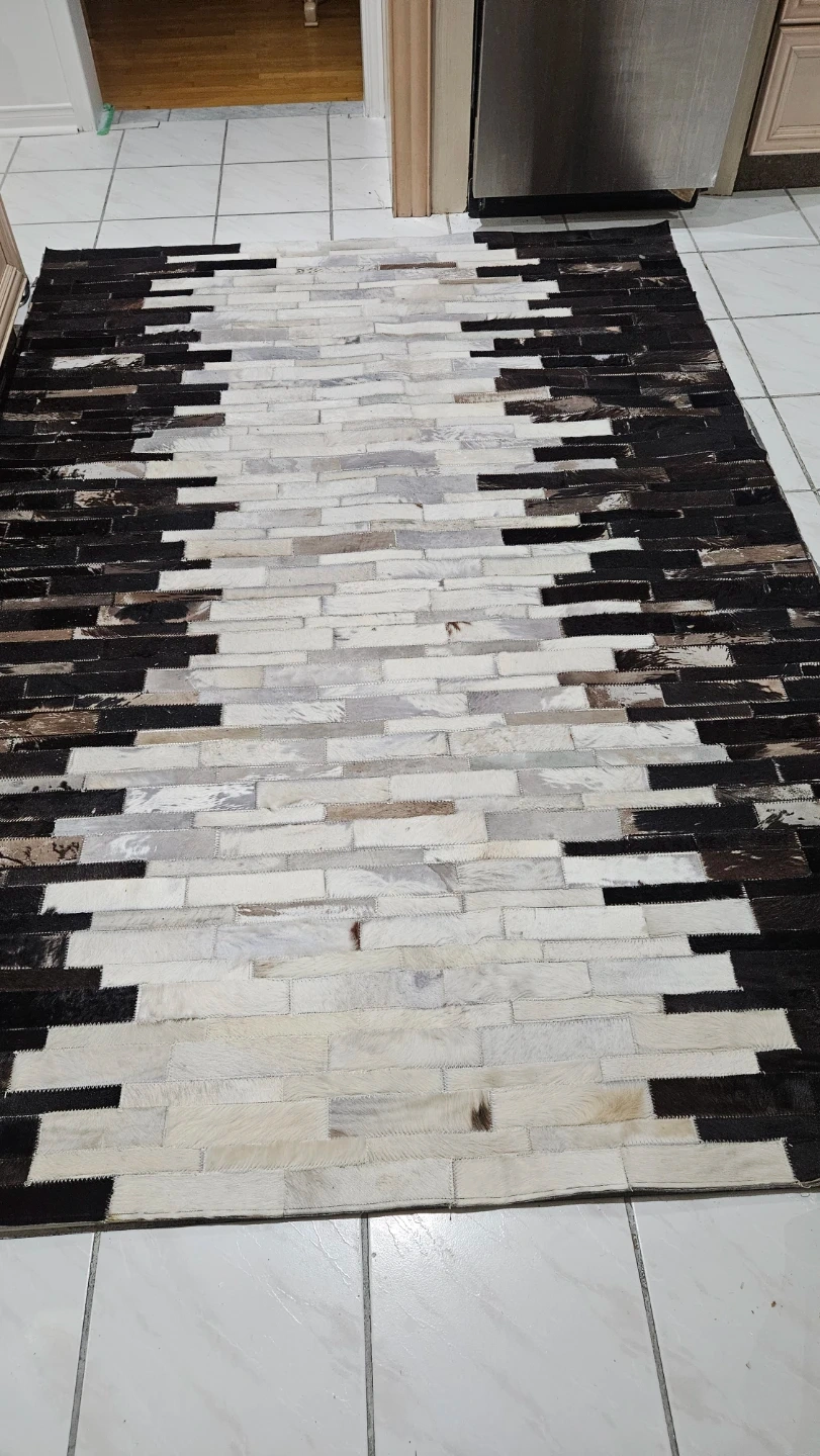 Selling a stylish cowhide rug in a striking black and white pattern. It measures 160x230 cm and would add a unique touch to any room
