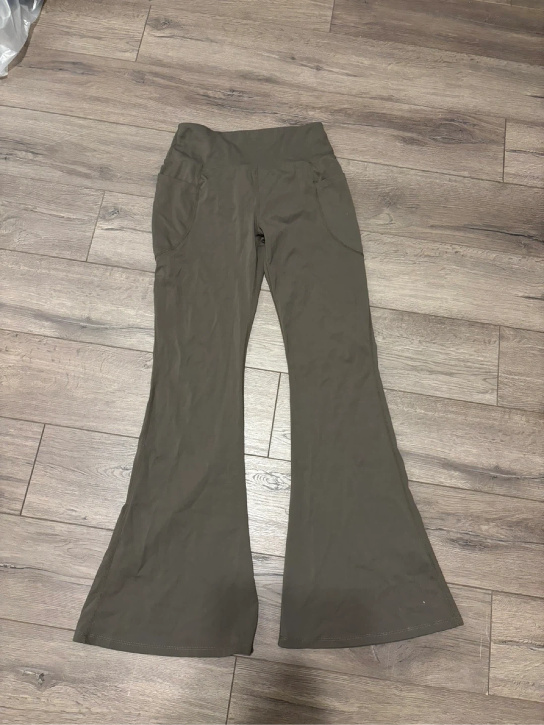 Selling a pair of Cider flare leggings in olive green! They are a size small and in great condition. It comes with a pocket on each side too.