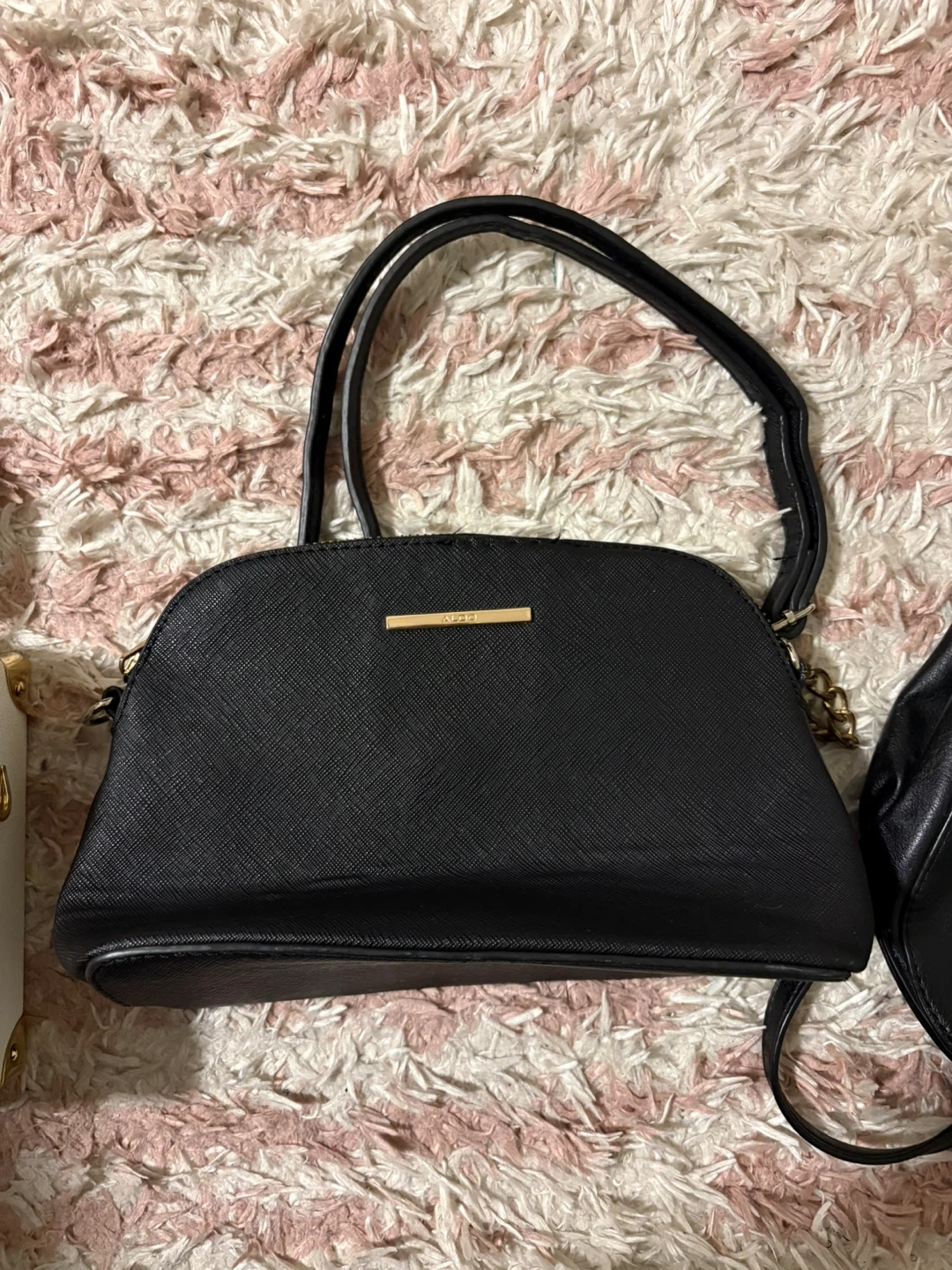 A stylish black and white ALDO handbags, perfect for any occasion! It's in good condition and ready for a new owner. The bag features a classic design with a gold-tone ALDO logo. A versatile addition to your wardrobe!