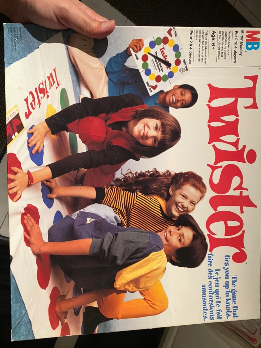 Selling a used Twister board game that’s missing the spinner. It's the game that ties you up in knots. Perfect for two to four players, ages 6+! Includes the box, the rules, and the mat. The spinner is missing.
