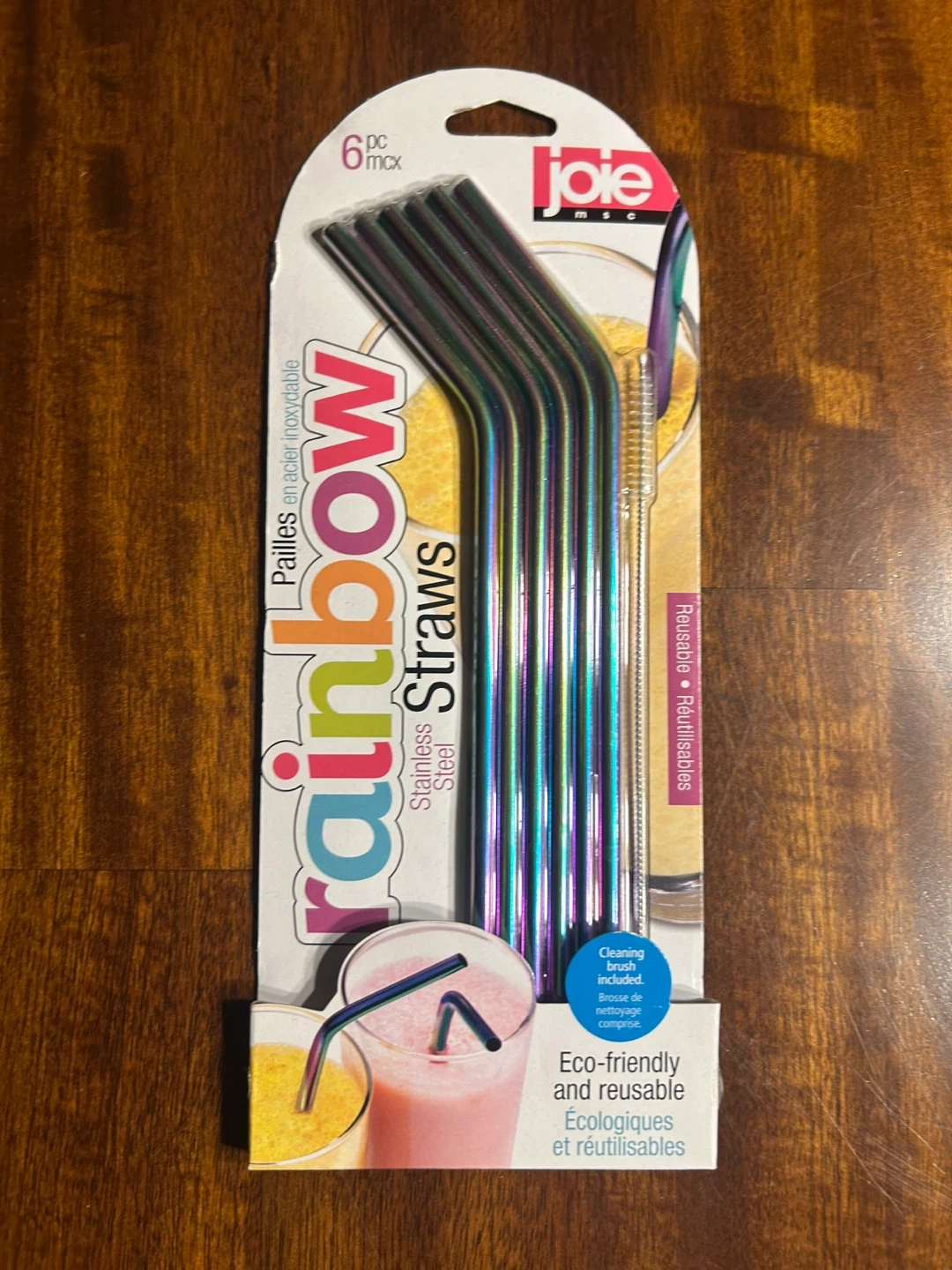 NEW! Joie Rainbow Stainless Steel Straws - 6 Pack