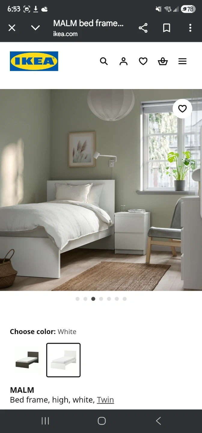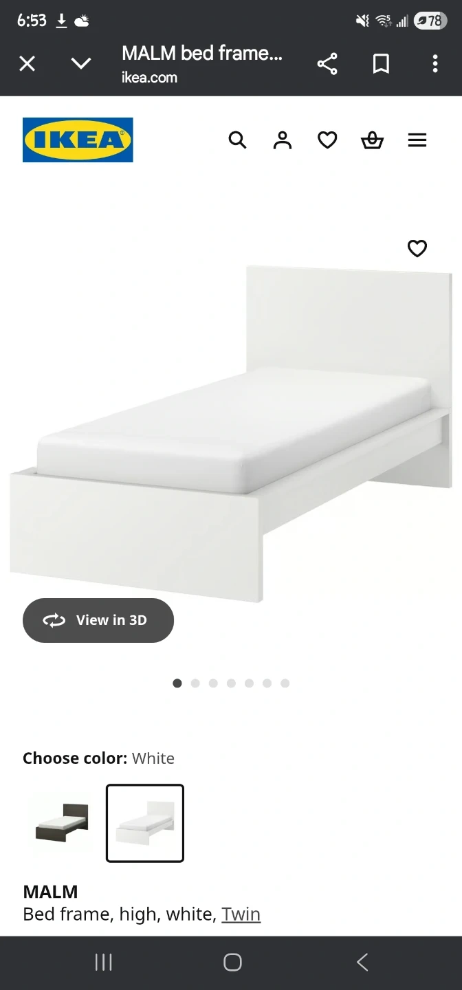 Selling a white IKEA MALM bed frame, high, in twin size. The dimensions are approximately 199 cm (78 3/8") in length, 112 cm (44 1/8") in width, and 100 cm (39 3/8") in height. Perfect for a smaller bedroom or guest room! Never slept on.