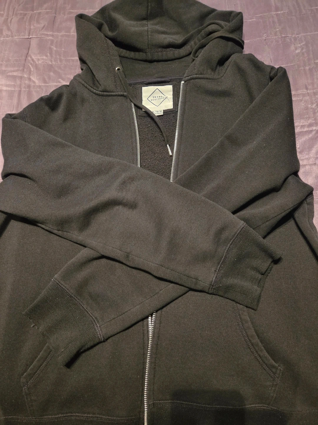 FREE men's black zip hoodie with pockets, size XL