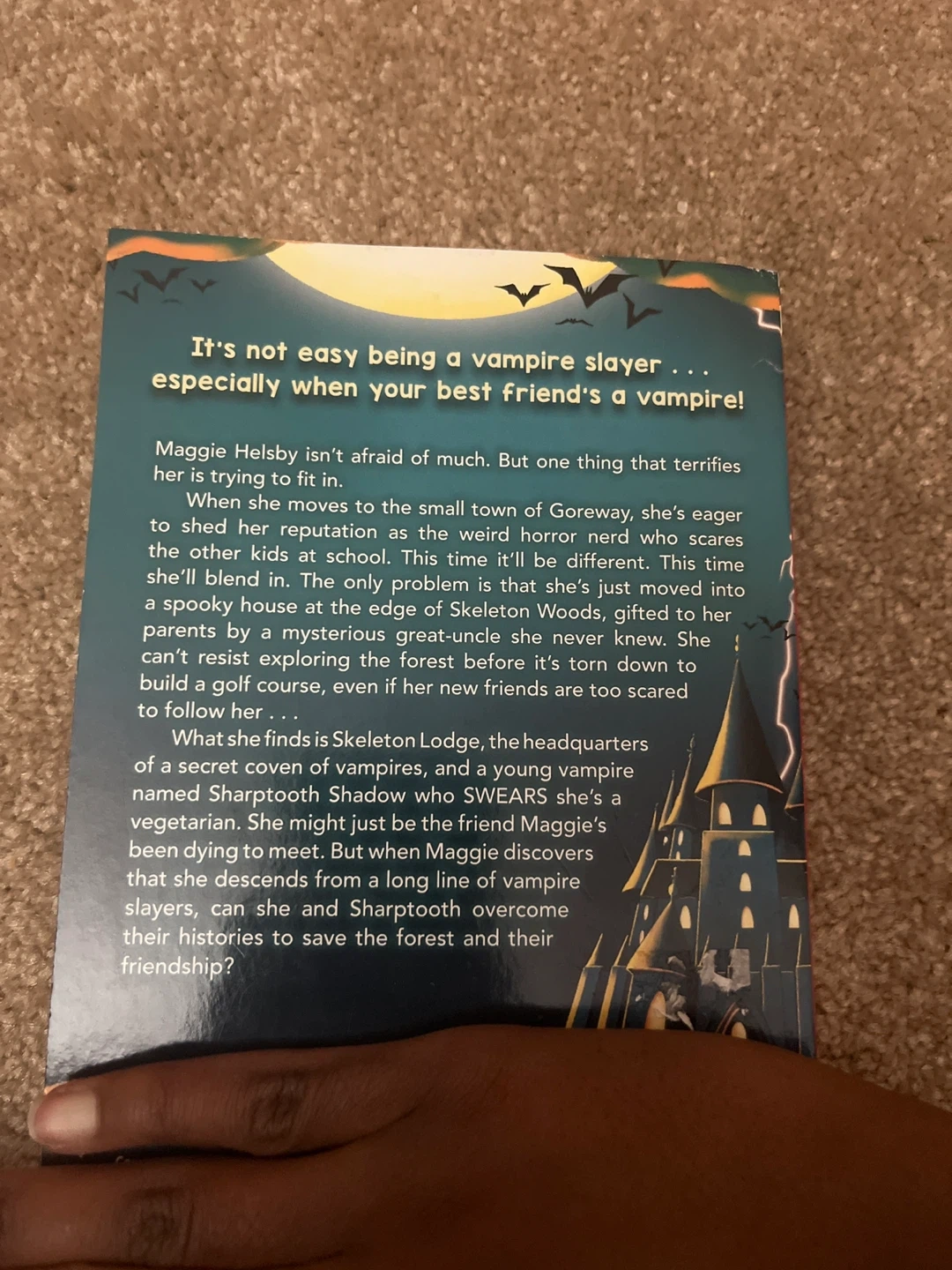 Selling the book 'How Not to Be a Vampire Slayer' by Katy Birchall! It's a fun read about Maggie Helsby and her adventures in the town of Goreway. She moves into a spooky house and discovers a secret coven of vampires. Perfect for anyone who enjoys a bit of mystery and humour!