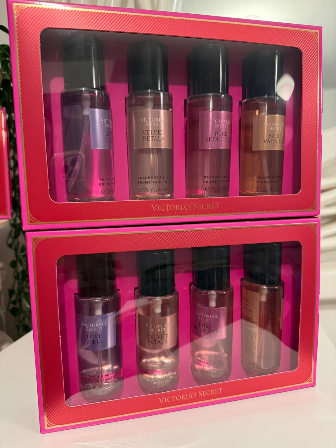 Selling a brand new Victoria's Secret fragrance mist set! This set includes four different scents: Love Spell, Velvet Petals, Pure Seduction, and Bare Vanilla. Each bottle contains 75ml/2.5 fl oz of fragrance mist. Perfect as a gift or to treat yourself!