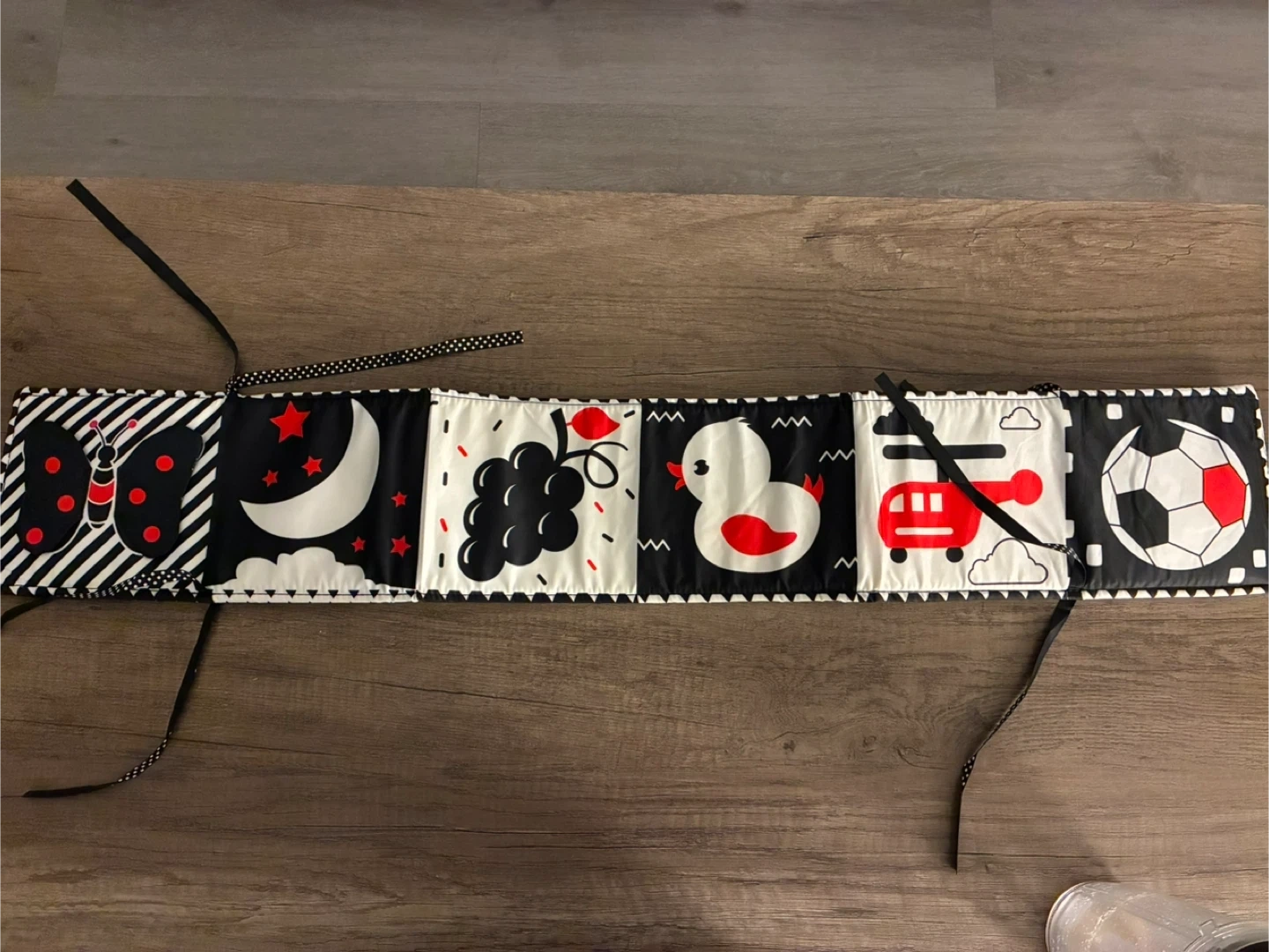 This black and white cloth book is perfect for stimulating your baby's vision! It features a variety of simple patterns and shapes that are easy for little eyes to focus on. It's soft, safe, and easy to clean, making it a great addition to your baby's toy collection