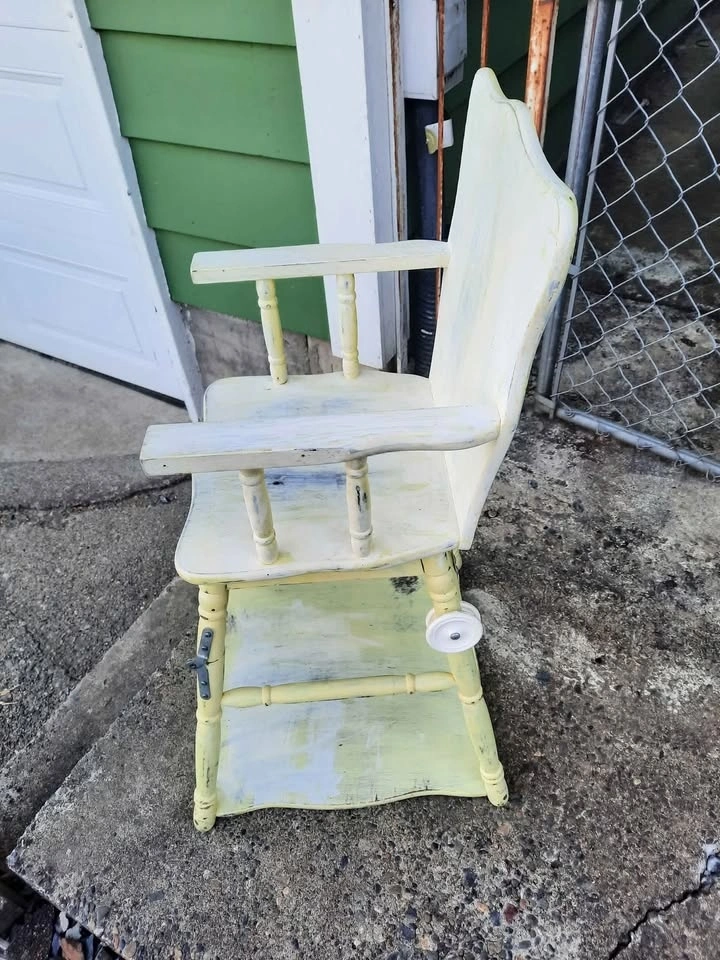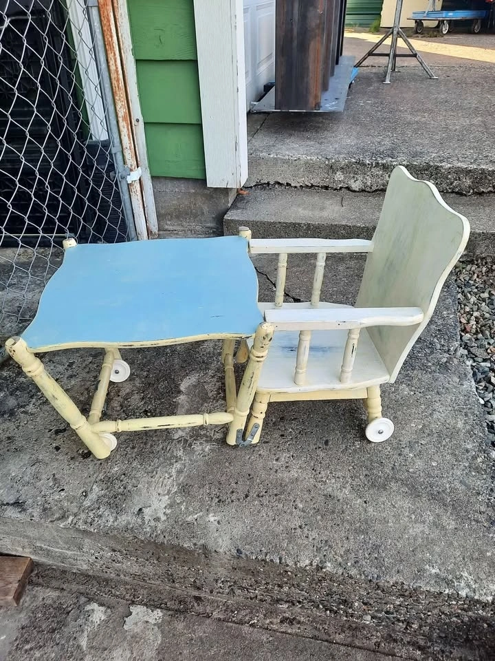 Vintage Highchair that converts to a desk. Totally usable for toddlers or refinish and use as a decor piece.