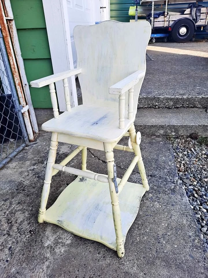 Vintage Highchair that converts to a desk. Totally usable for toddlers or refinish and use as a decor piece.