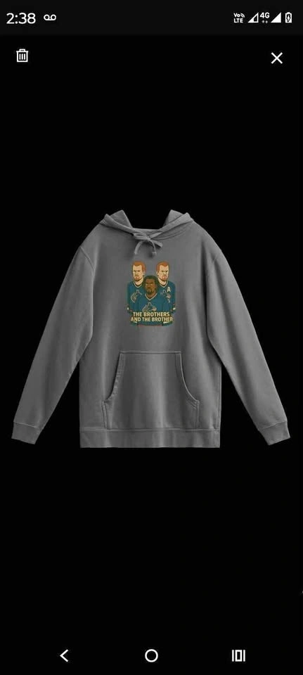 Rep the golden era — the twins, the grit, and the brother who brought swagger to the line. This hoodie’s a tribute to Vancouver hockey’s most iconic trio: quiet talent, relentless hustle, and a touch of beautiful chaos.