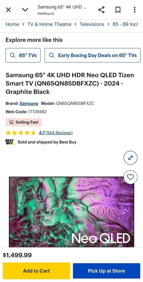 Samsung 65 inch Neo QLED Tizen Smart TV 2025