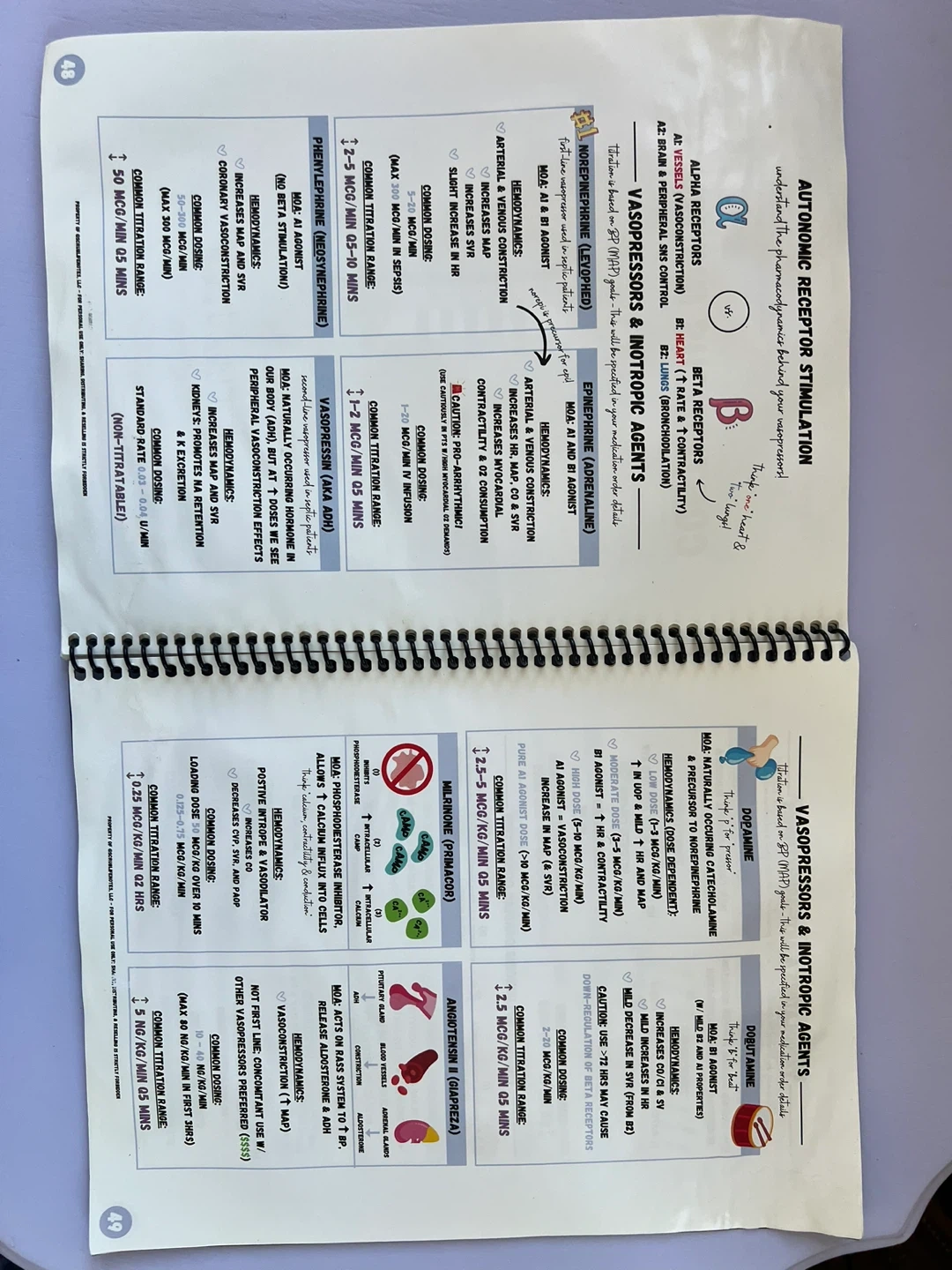 I'm selling a spiral-bound book titled "New to ICU: A Visual Guide to Critical Care Nursing" created by Scrub Life Notes