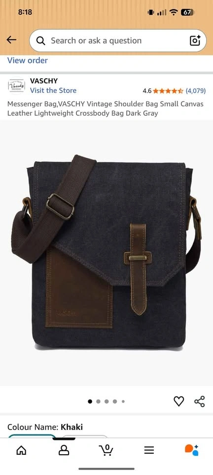 Vaschy Vintage style shoulder Messenger bag (canvas)