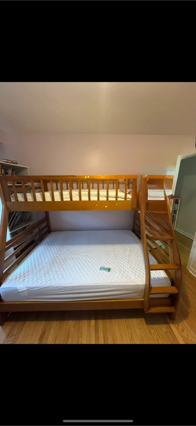 Selling a bunk bed with a built-in staircase. It's in great condition and perfect for kids or a guest room