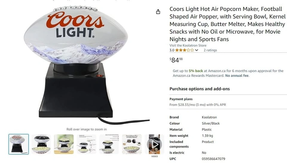 Buy & Sell🧡 Coors Light popcorn maker🧡 Coors Light popcorn maker$17Great condition Coors popcorn maker.ConditionGoodWHERE TO MEETBurke Mountain, CoquitlamView MapSELLERverifiedDerekBurke Mountain681 review0 chats·1 favorites·10 viewsSEND CHAT TO SELLERHi Derek! I’m interested in your listing.Hi Derek! I’m interested in your listing.Get the Karrot app to chatSign In to chat