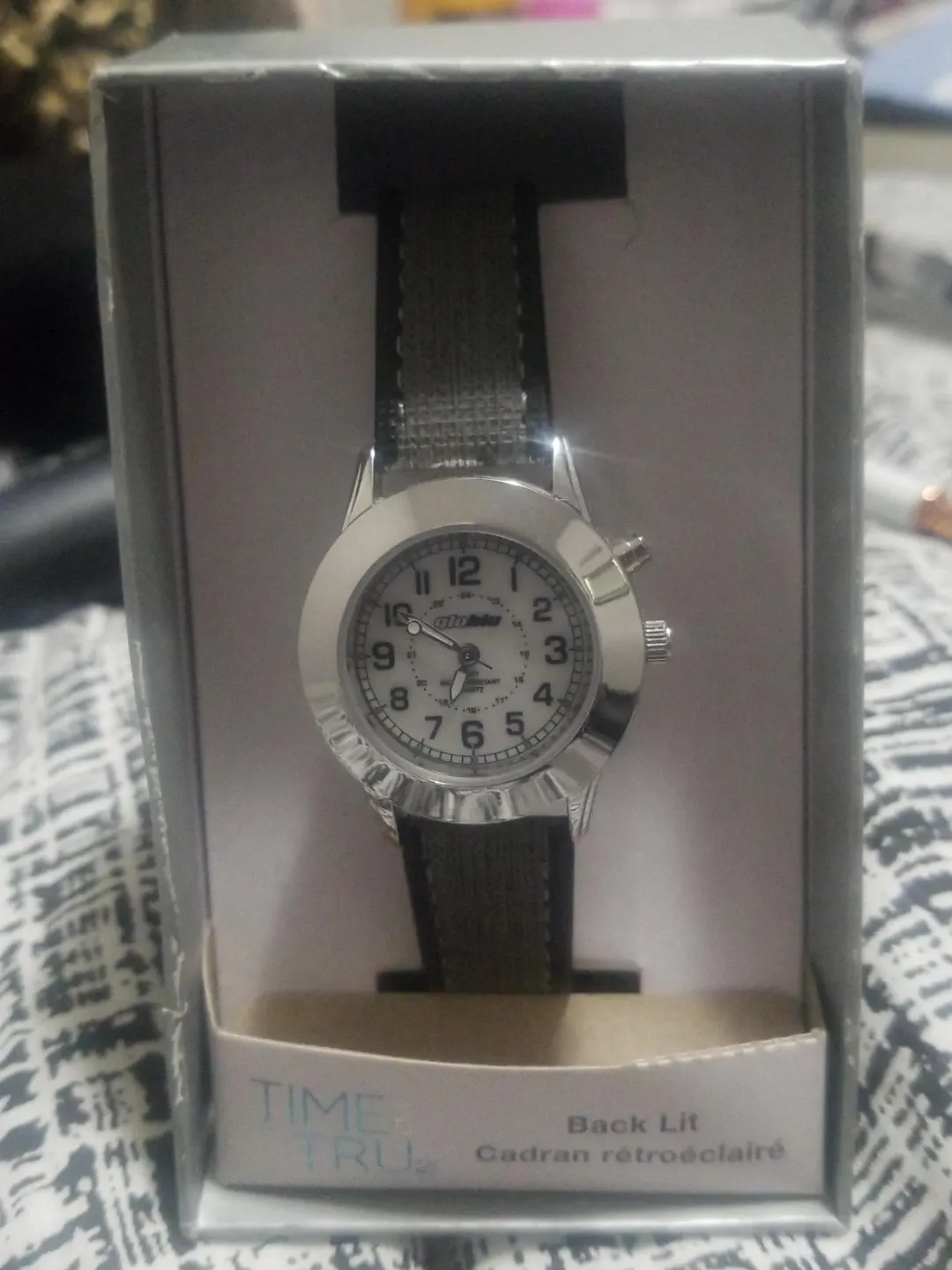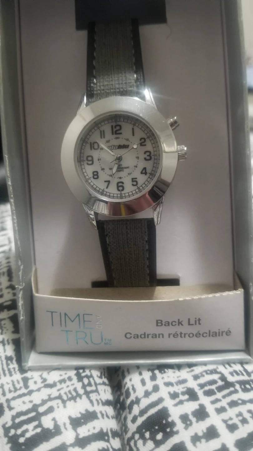 Selling a brand new Time and Tru back lit watch, still in its original box! It features a classic design with a clear, easy-to-read dial. Perfect for everyday wear or as a thoughtful gift