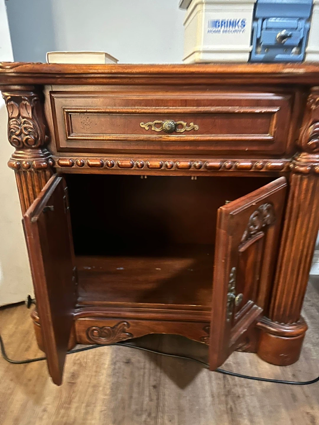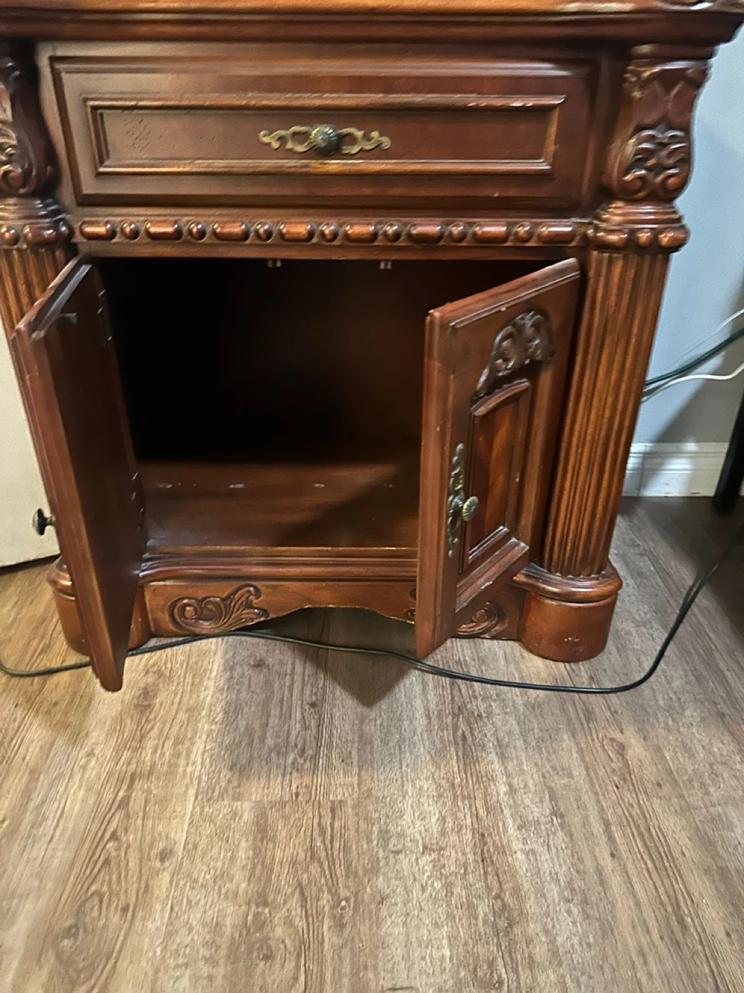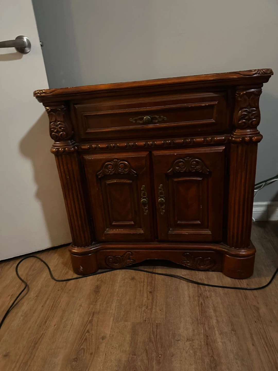 Buy & SellWood Nightstand with Drawer & DoorsWood Nightstand with Drawer & Doors$40Selling a wooden nightstand featuring a drawer and doors. It has a beautiful, detailed design and would be a great addition to any bedroom!Dimensions32” by 18” by 32”WHERE TO MEET2929 Aquitaine AveView MapSELLERverifiedAustinMeadowvale751 review1 chats·0 favorites·59 viewsSEND CHAT TO SELLERHi Austin! I’m interested in your listing.Hi Austin! I’m interested in your listing.Get the Karrot app to chatSign In to chat
