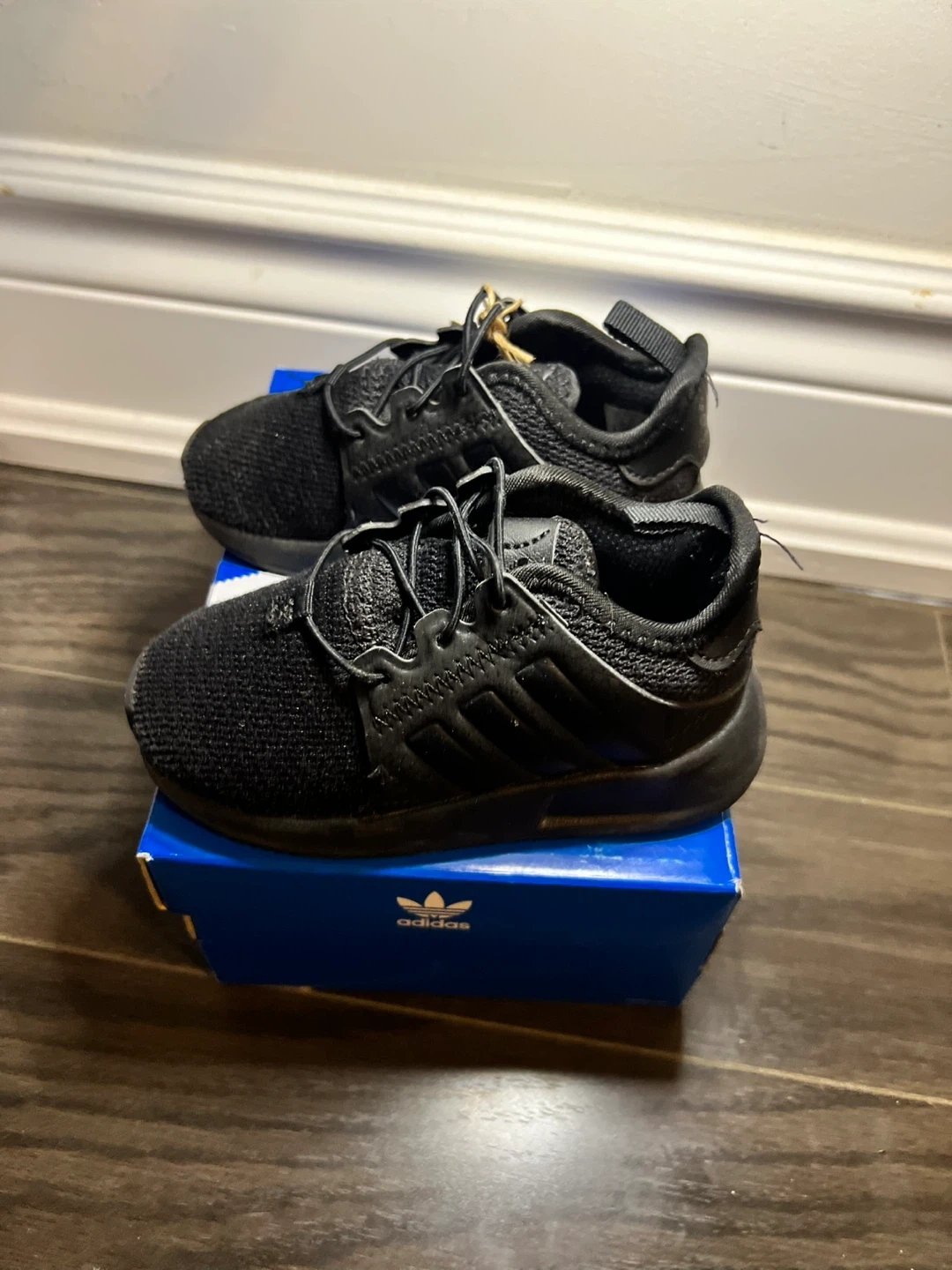 Selling a pair of Adidas X_PLR EL I kids sneakers in size 5.5K. They come with the original box. The shoes are black (CBLACK/CBLACK/CBLACK). Great for your little one!