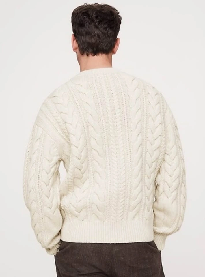 Mens Italian Merino Cable-Knit Sweater (Size XL)