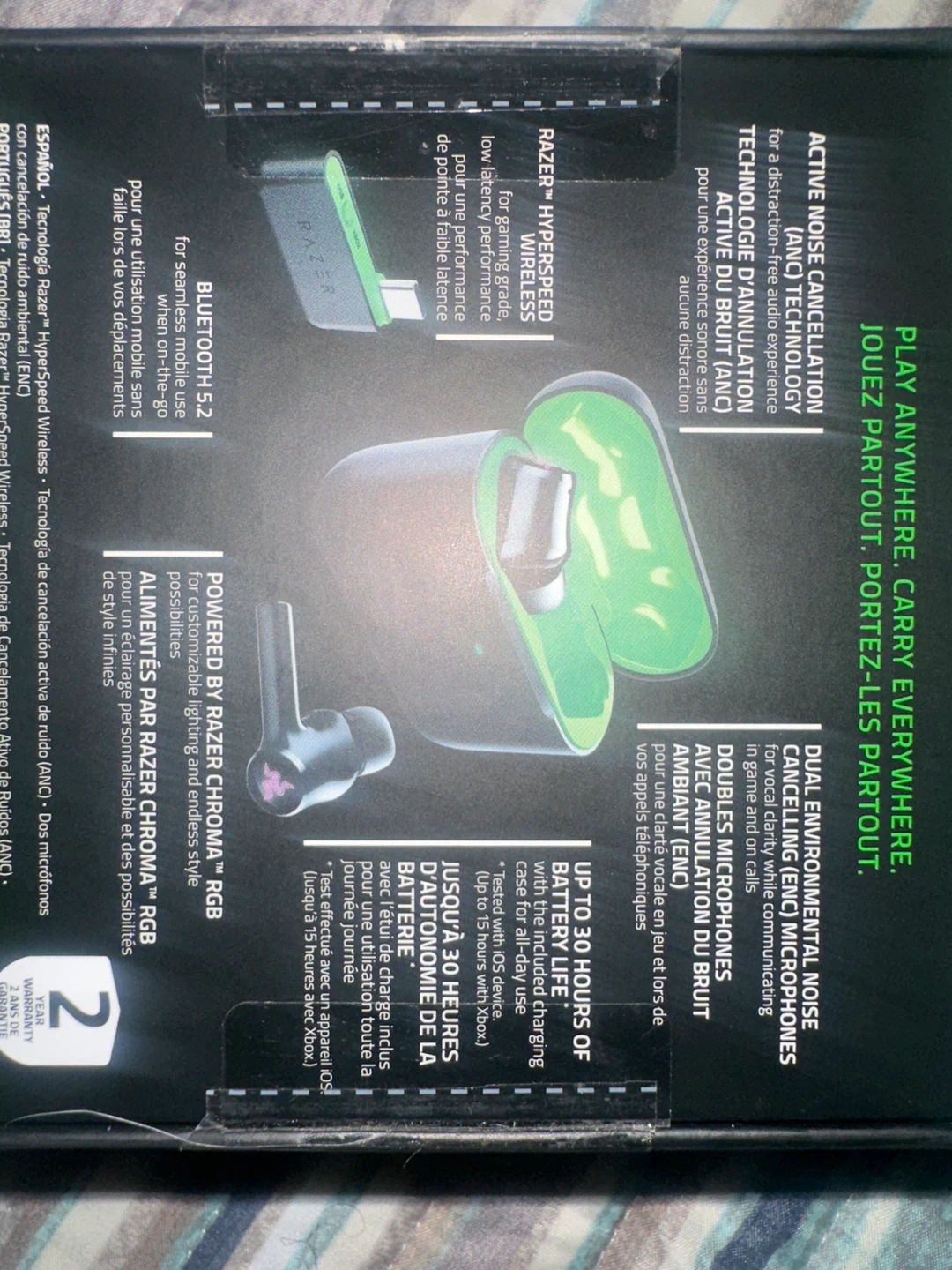 The Razer Hammerhead HyperSpeed Wireless Canal Earbud in black offers gamers a seamless gaming experience with its Bluetooth connectivity and active noise cancellation feature. Designed for Xbox consoles, this in-ear headset provides a comfortable fit with its double earpieces and built-in microphone. The compact form factor and 0.5m Type C charging cable make it convenient for on-the-go gaming sessions. Experience high-speed multiplayer gaming with the Razer Hammerhead HyperSpeed headset in 2022. ONLY Opened BOX TO SEE IF THEY TURNED ON. NEVER USED