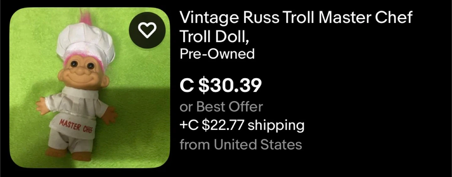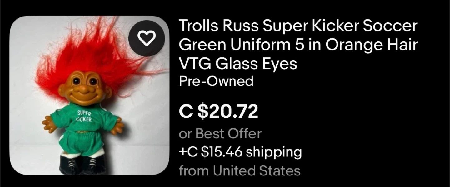 Selling a collection of vintage Russ Troll dolls! There's a Super Kicker Soccer troll with a green uniform, a Master Chef troll, a Christmas Angel troll, and an Easter troll. All are pre-owned and have unique features. $50 for all