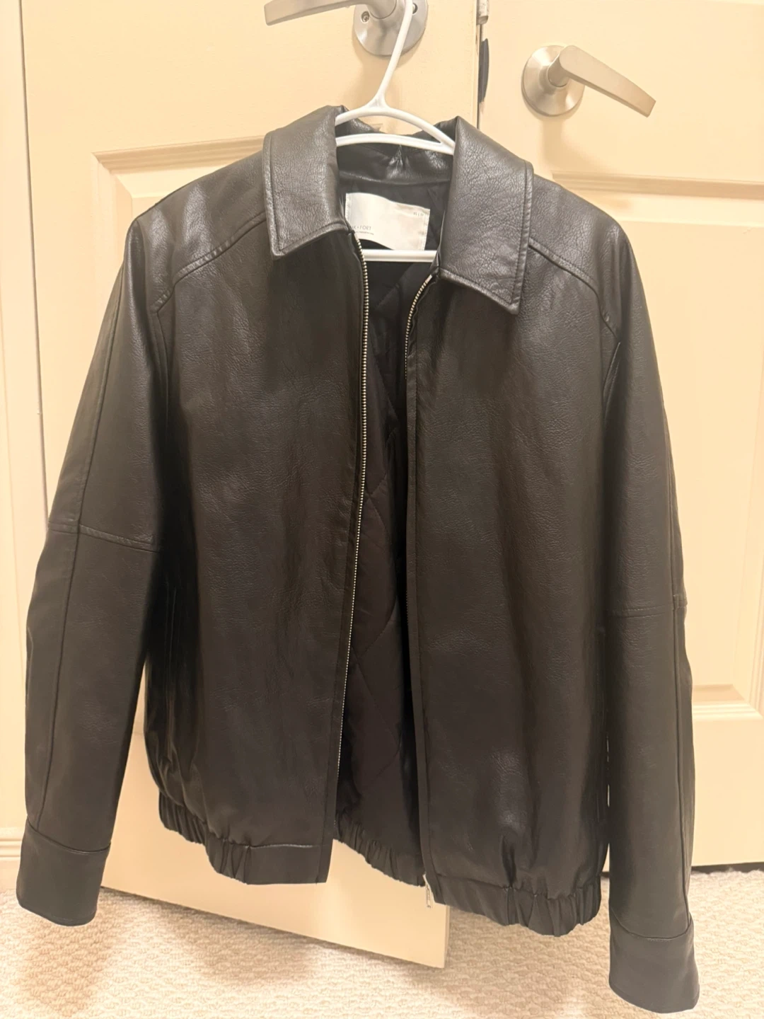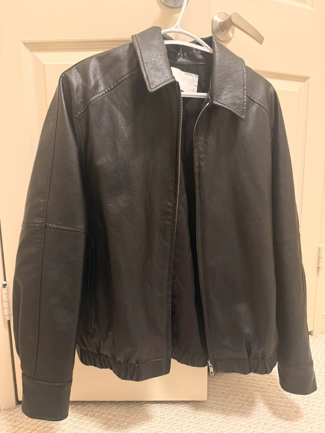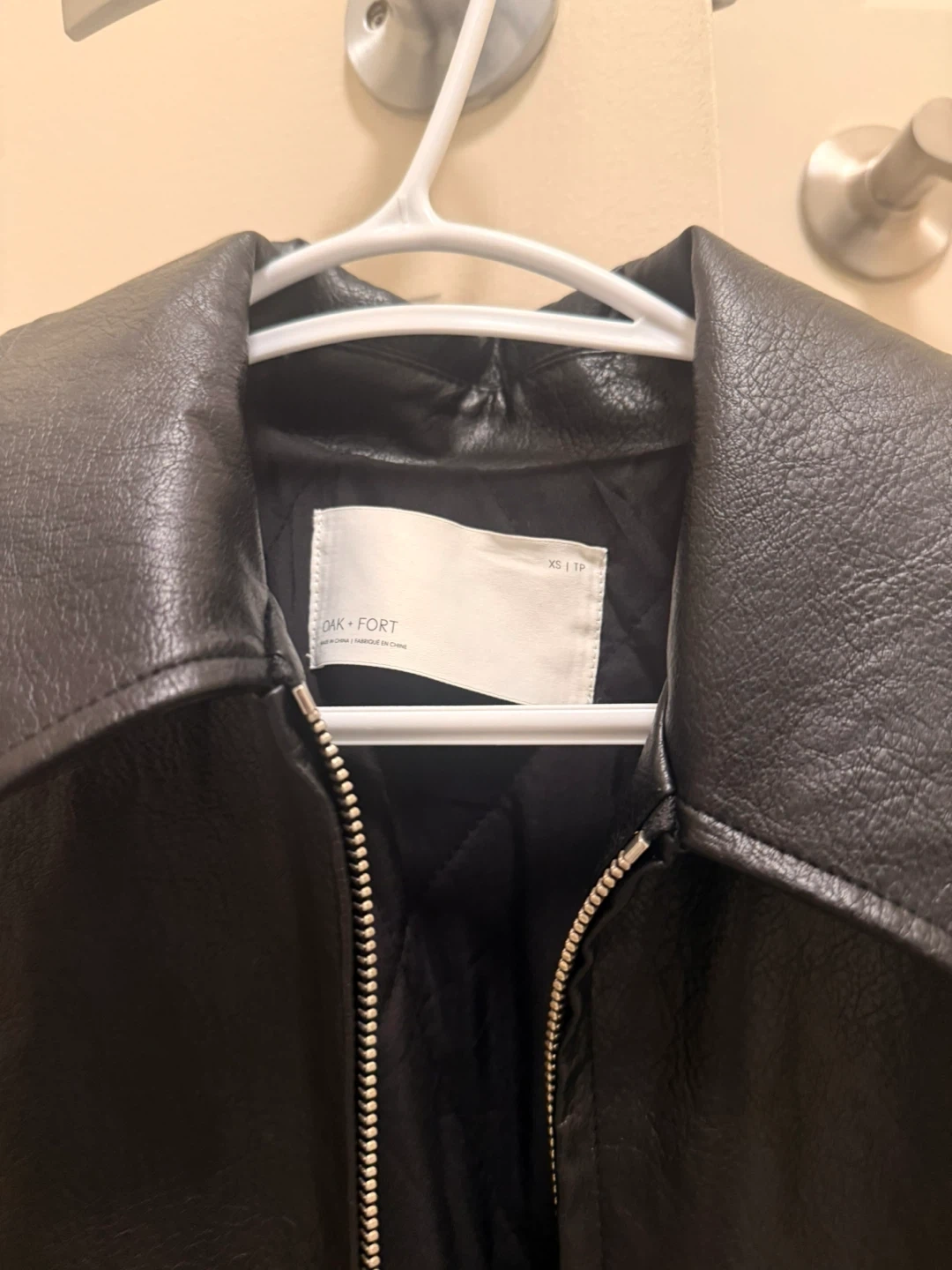 Selling a gently used Oak + Fort black faux leather jacket in size XS. It's in great condition and perfect for layering!