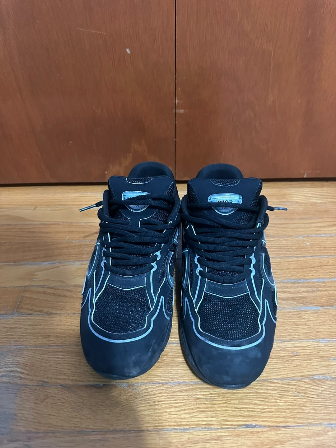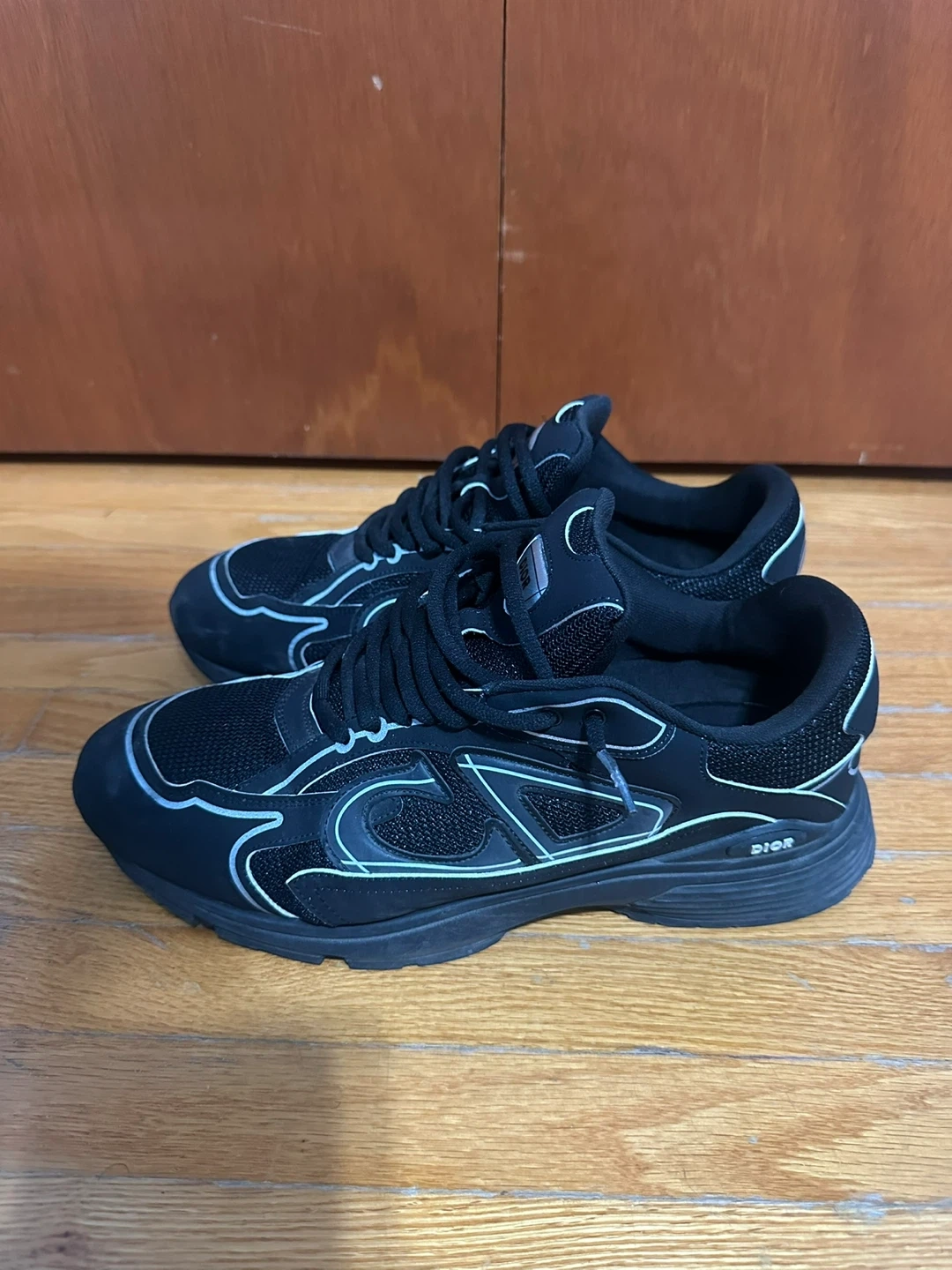 Selling a pair of Dior B30 sneakers in black. They are in good condition and feature the iconic CD logo. A stylish and comfortable choice!