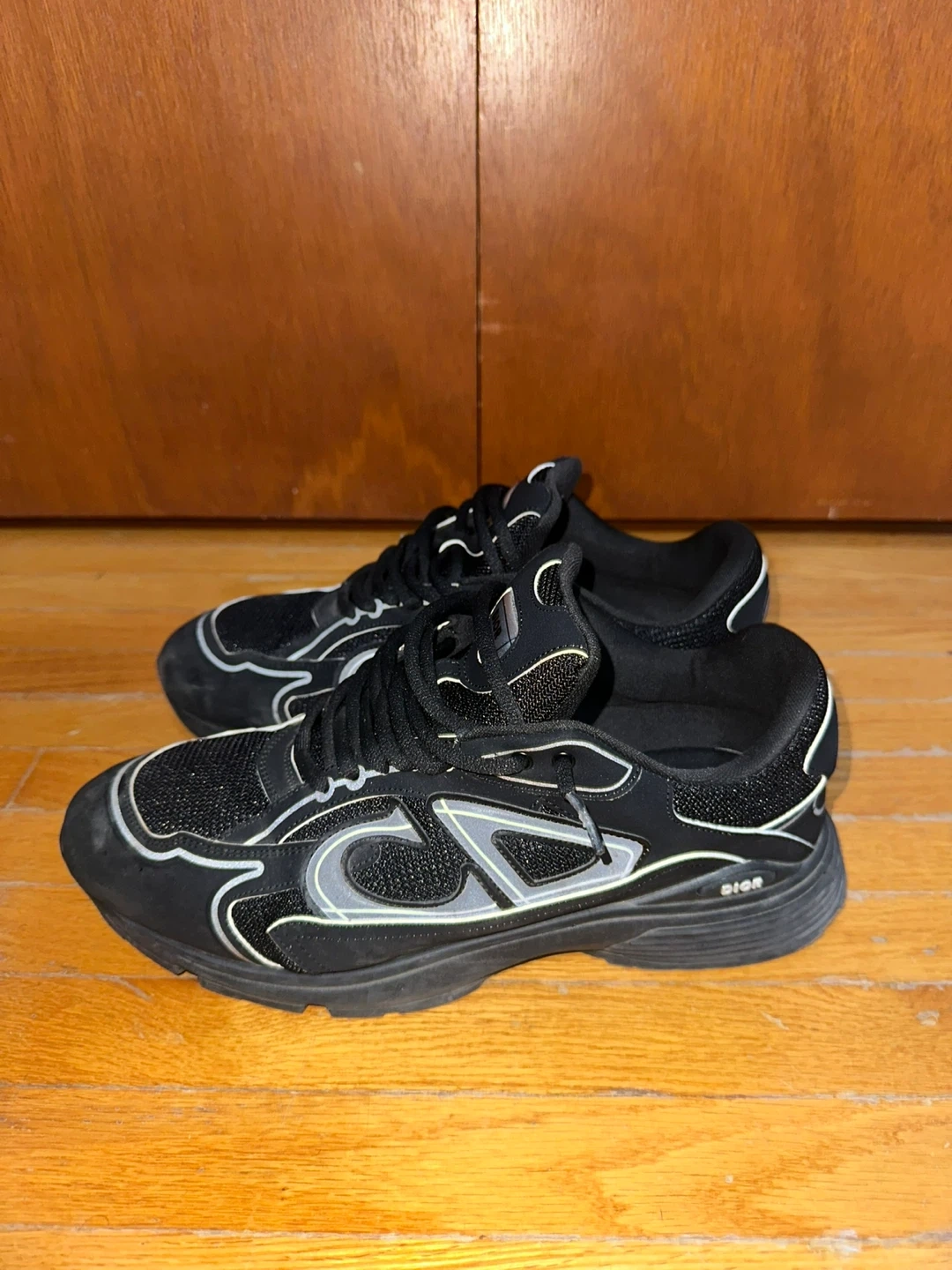 Selling a pair of Dior B30 sneakers in black. They are in good condition and feature the iconic CD logo. A stylish and comfortable choice!