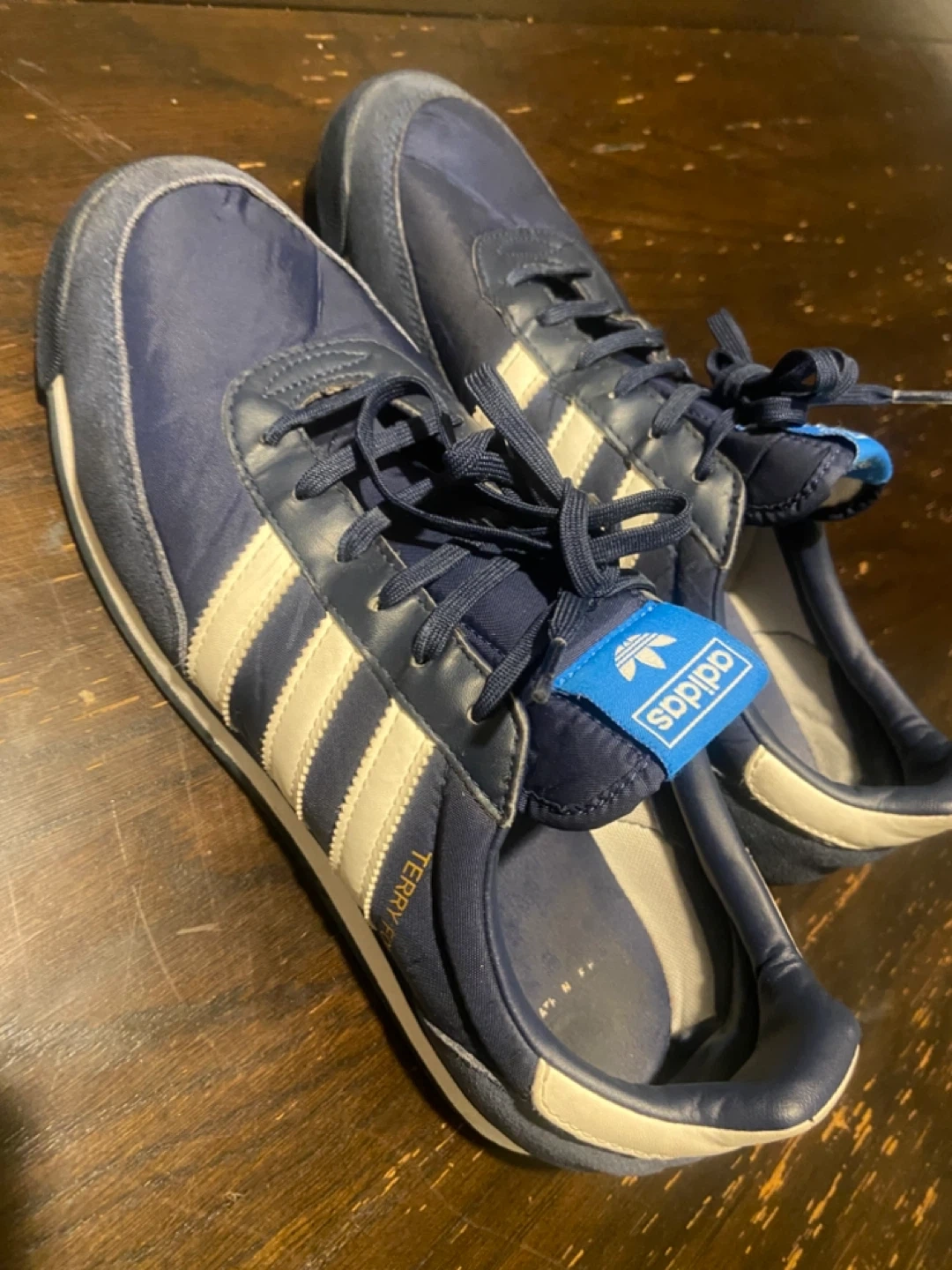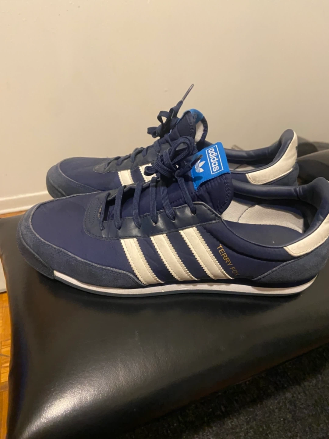 A chance to get the iconic terry fox Selling a pair of Adidas Terry Fox running shoes. They are in good condition with the classicAdidas stripes. Great for casual wear or light jogging. The shoes feature a comfortable sole and a stylish design. Don't miss out!